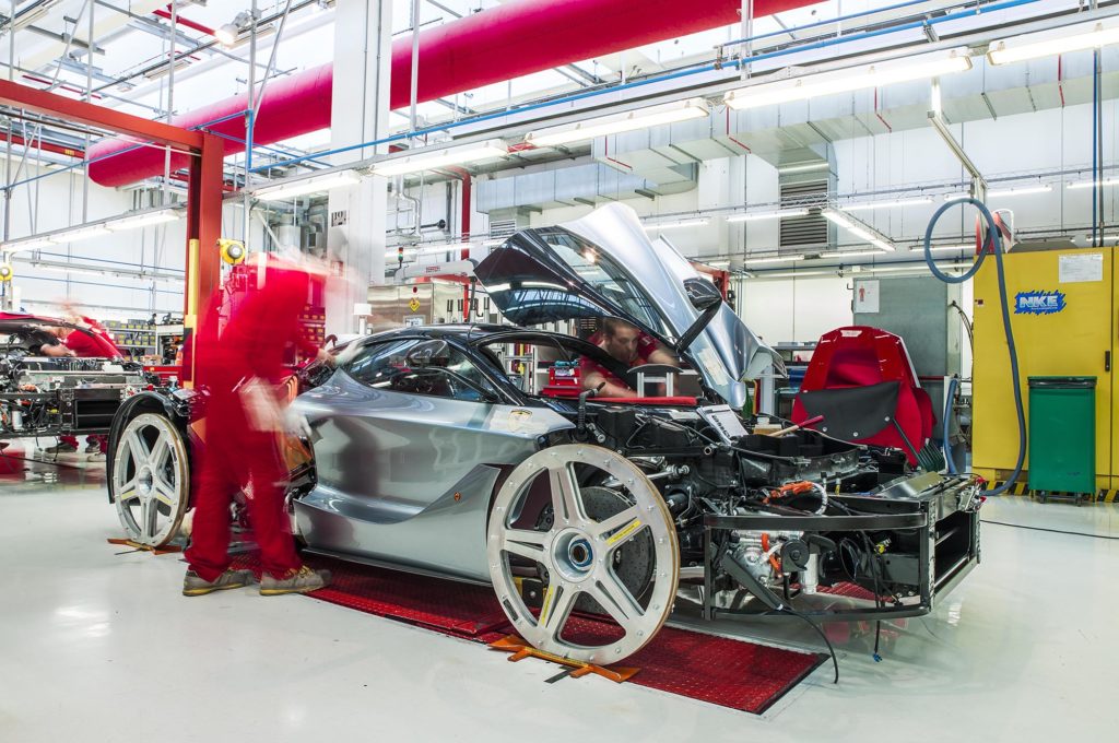 LaFerrari a gyártósoron, figyelemreméltó a végleges kerekek helyettesítése
