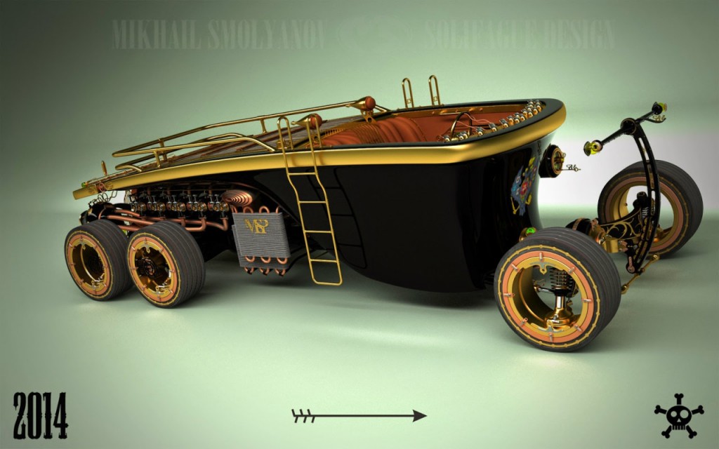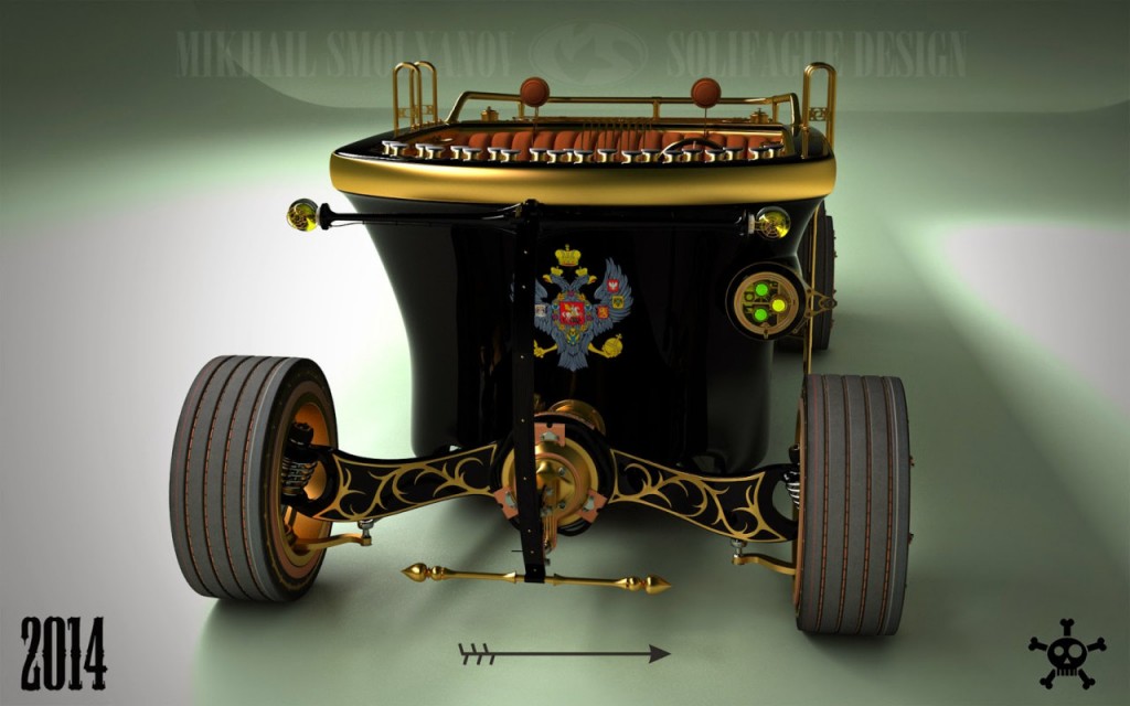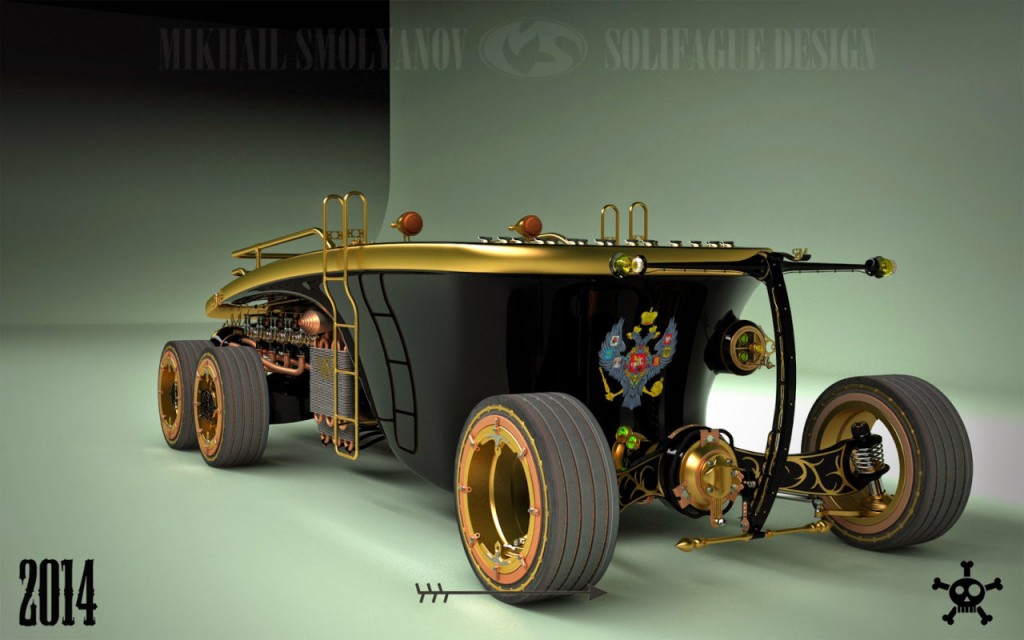 Mihail Szmoljanov elképesztően ráérzett a stílusra – őszintén reméljük, a 2014-ben virtuálisan készült hatkerekűből egyszer valódi, kézzel fogható, működőképes jármű is lesz.