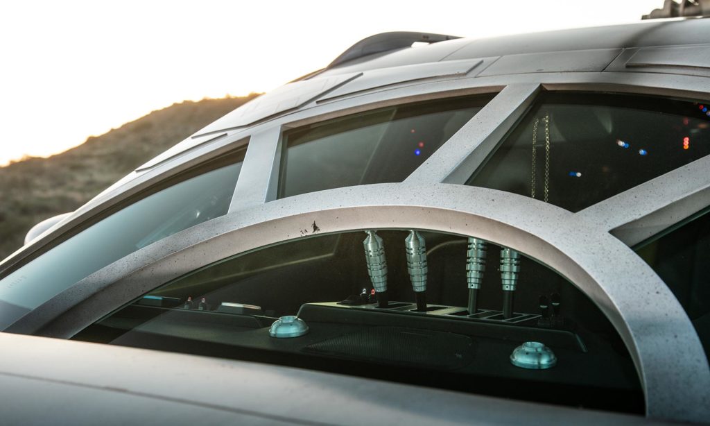Az alapokat a nálunk X-Trail néven forgalmazott típus adta, erre került az Ezeréves Sólyom stílusában készült burkolat, aminek megtervezésében a Lucasfilm munkatársai is segítettek. Fantasztikusan néz ki az osztott szélvédő és a keréktárcsa, még a hajtómű is megvan a hátulján, amihez külön fény- és hangeffektet készítettek.