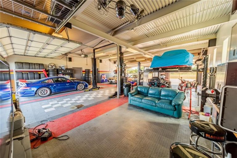 Ha nem zavar, hogy a hátsó kertben egy 2,7 kilométeres versenypálya található, amin időnként hangos autók és motorok köröznek, akkor érdemes egy pillantást vetned erre a texasi ingatlanra. A kétszintes családi ház földszintjét ugyanis egy hat autó befogadására alkalmas garázs és egy emelővel is felszerelt műhely foglalja el, ahol minden nap kedvedre foglalkozhatnál álmaid autógyűjteményével.