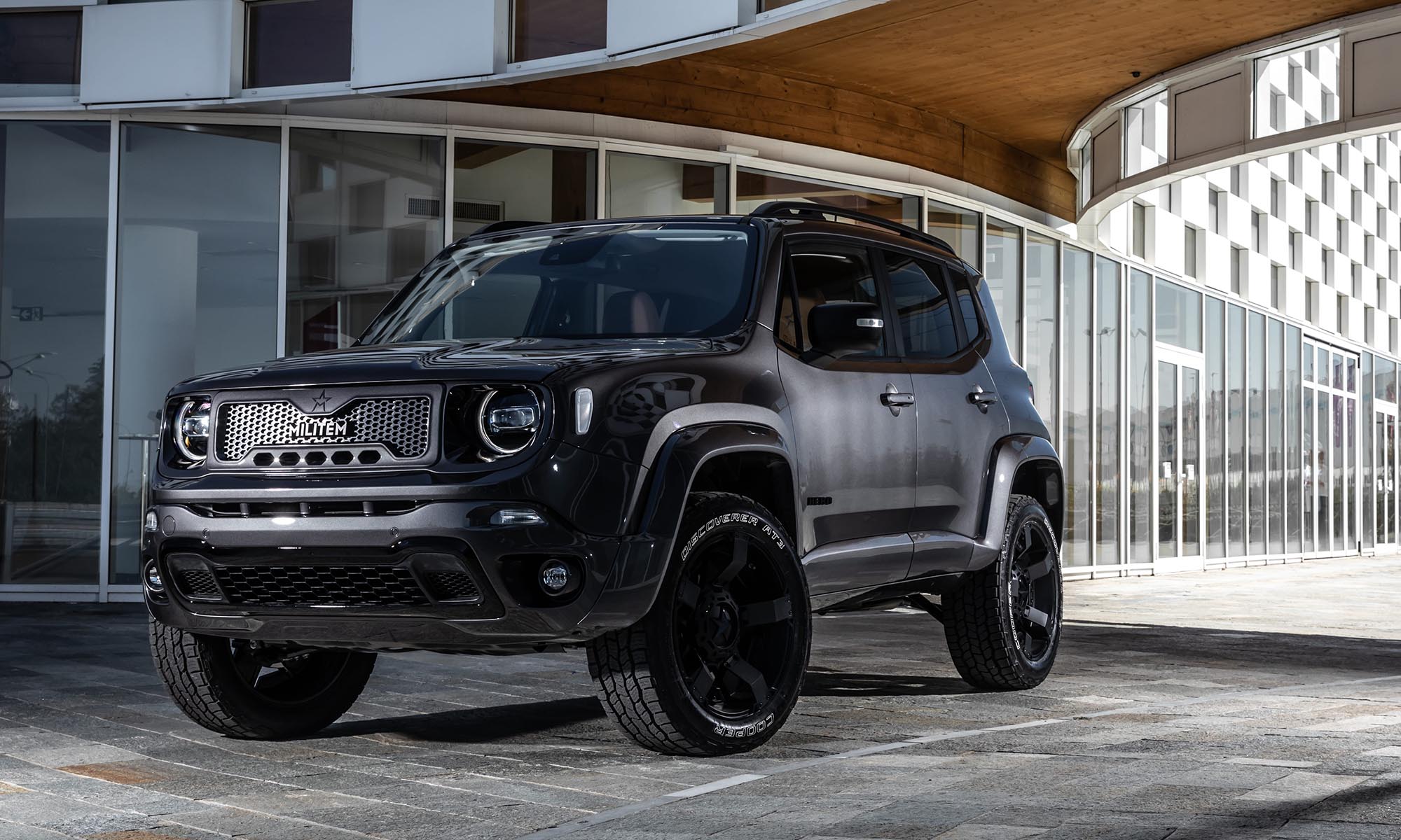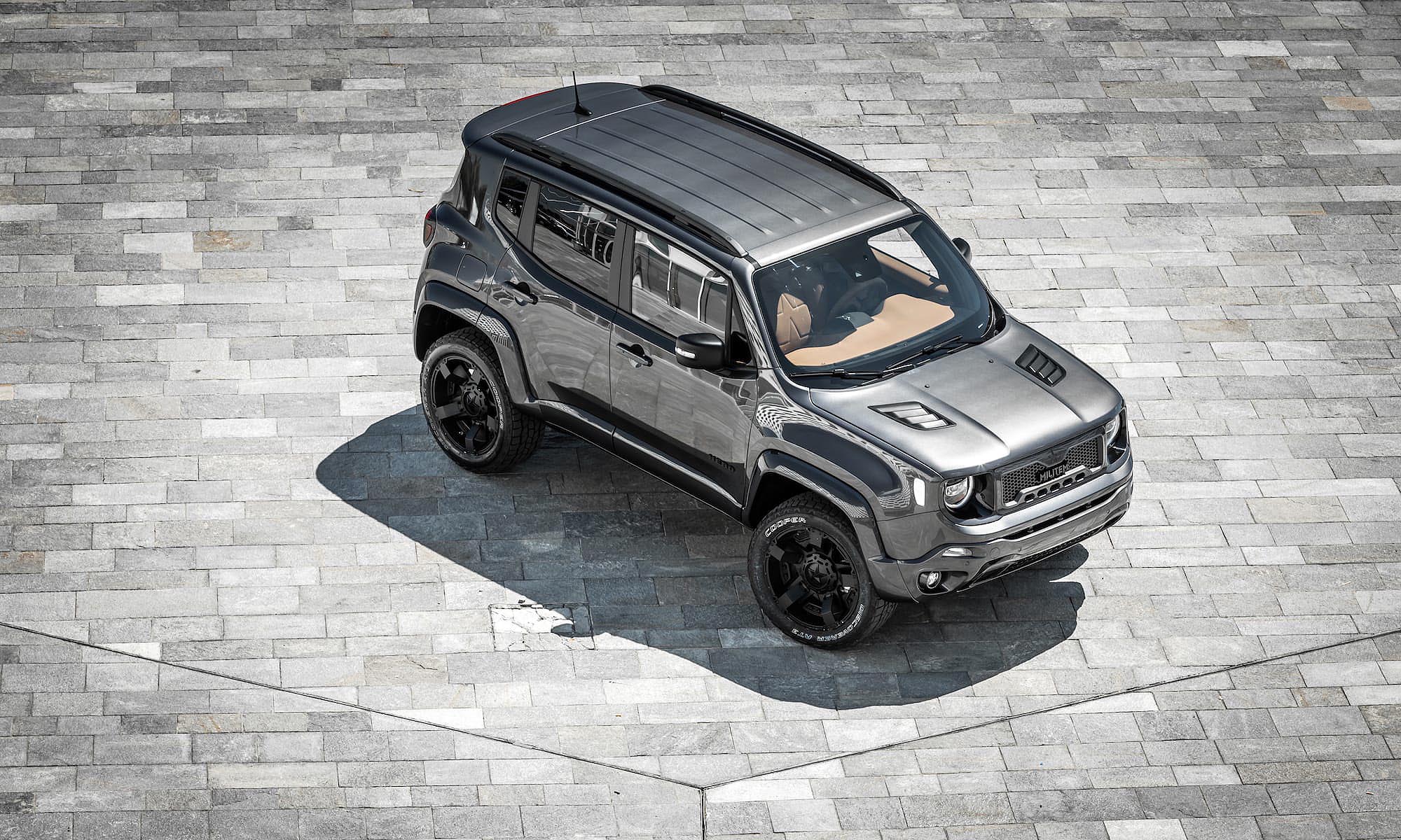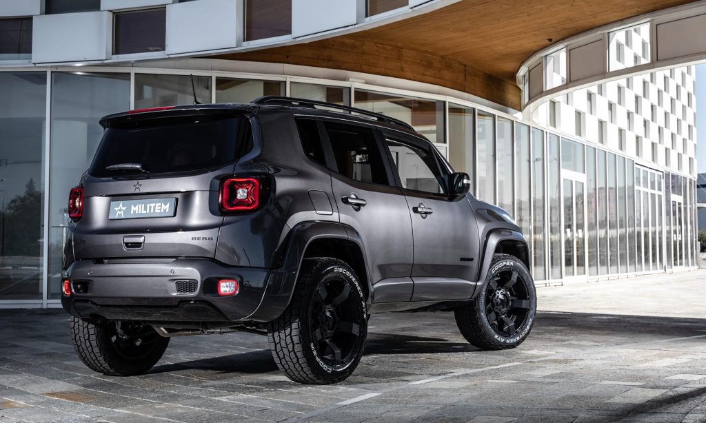 Jeepek átépítésére specializálódott az olasz Militem, ami ezúttal az amerikai márka legkisebb típusát, a 4,23 méter hosszú Renegade-et vette kezelésbe. A Hero névre keresztelt kisterepjárót harciasabb külsővel látta el, első lépésként megváltak a Jeepek jellegzetességeként ismert függőleges osztású hűtőmaszktól, és a fényezés is a katonai járművekére emlékeztet.