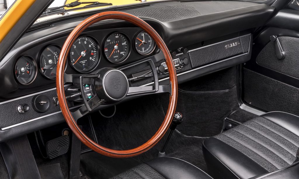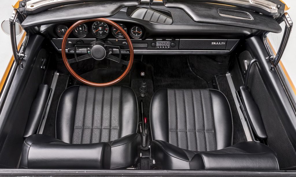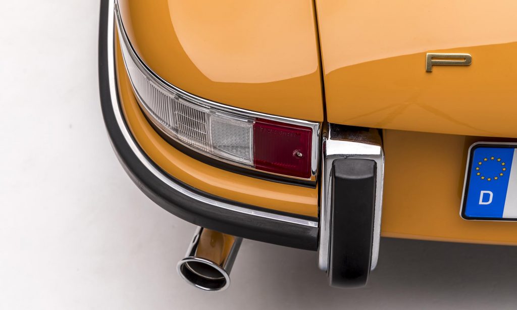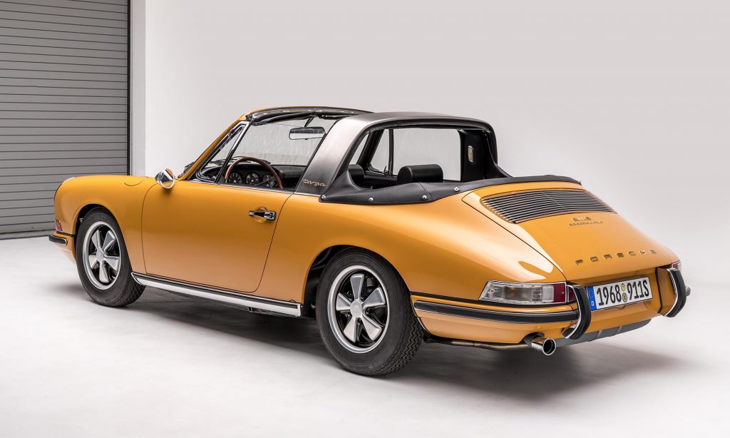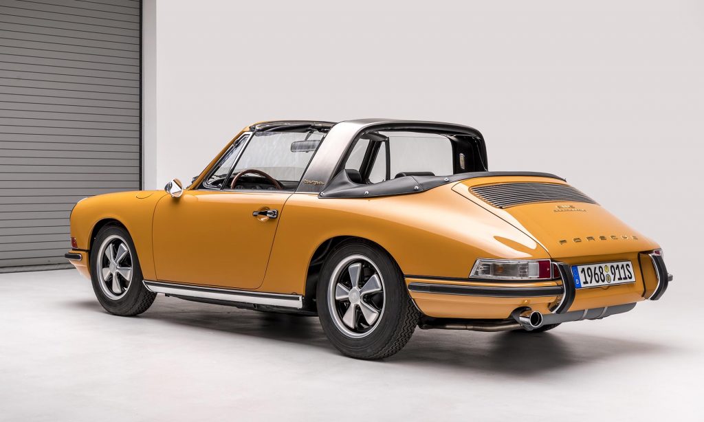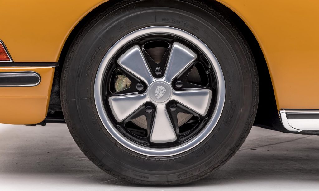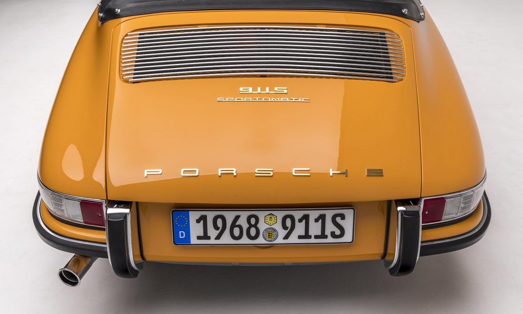 1968-as évjáratú ez a példány, még a műanyag hátsó szélvédővel, de már a 911S változatban. A kétliteres, hathengeres bokszermotor teljesítményét ebben 130-ról 160 lóerőre növelték, és az ikonikussá vált Fuchs felnik is ekkor jelentek meg.