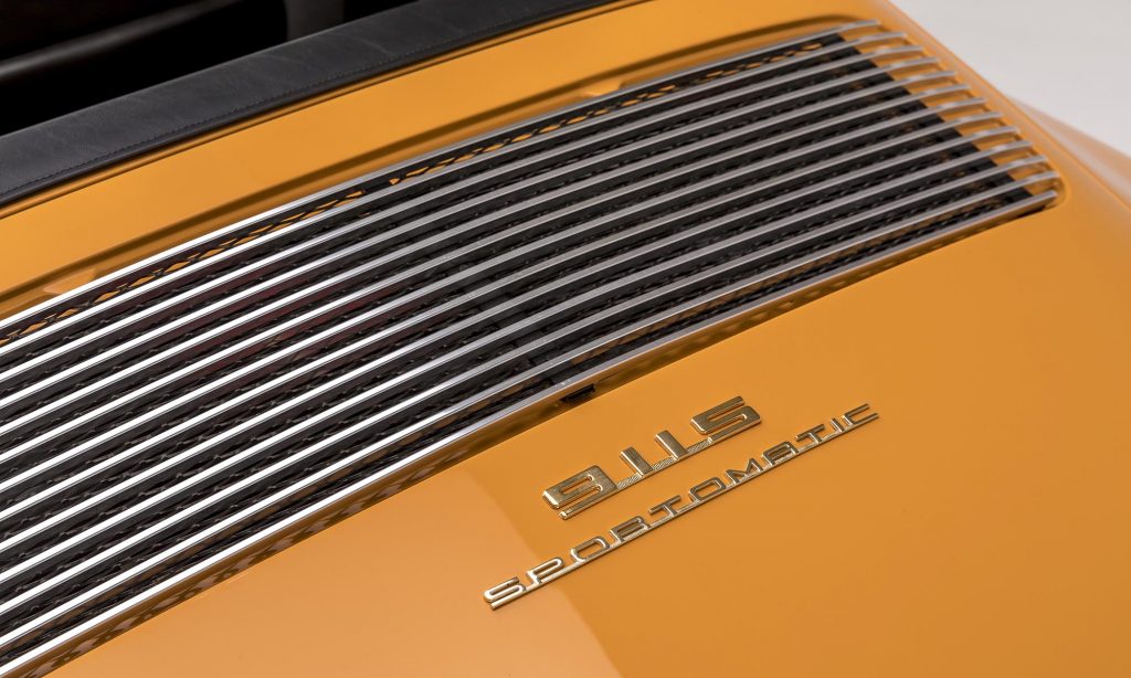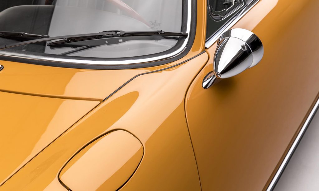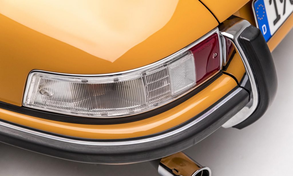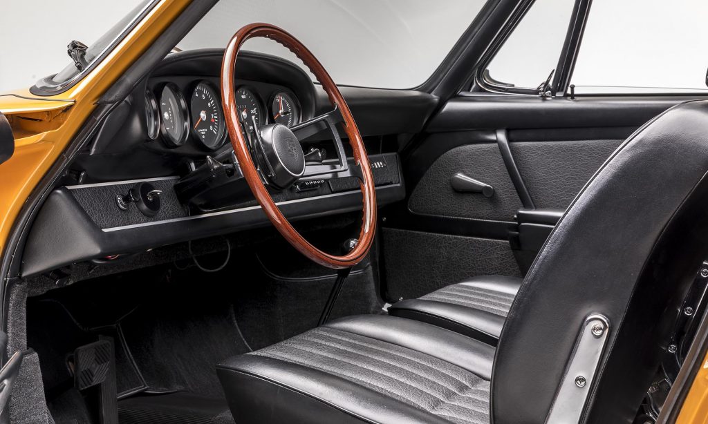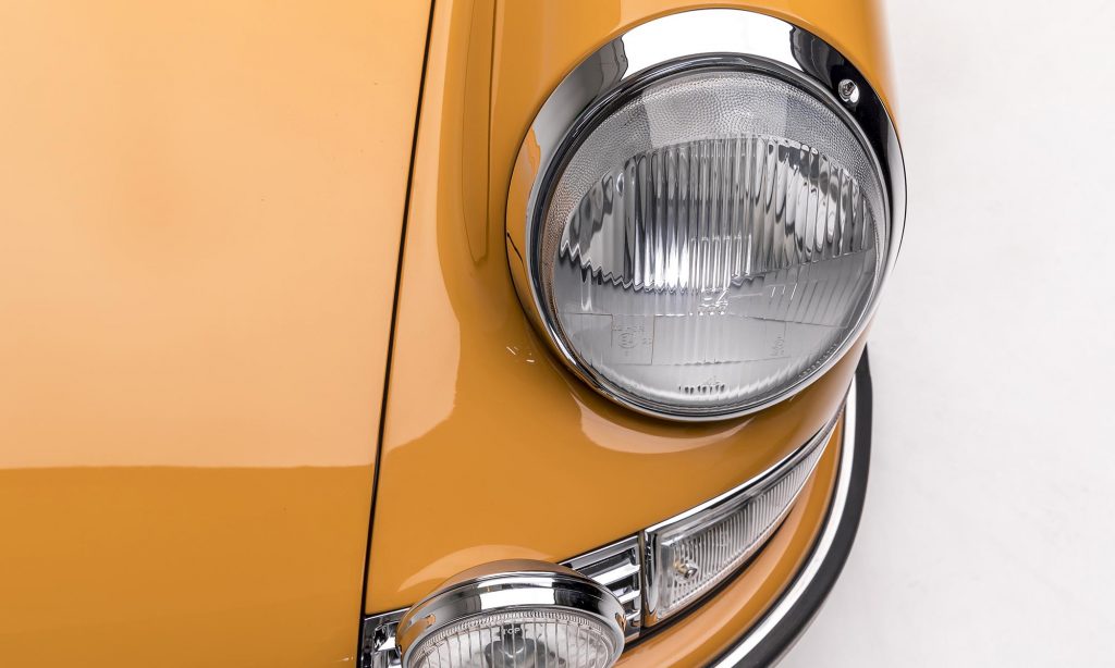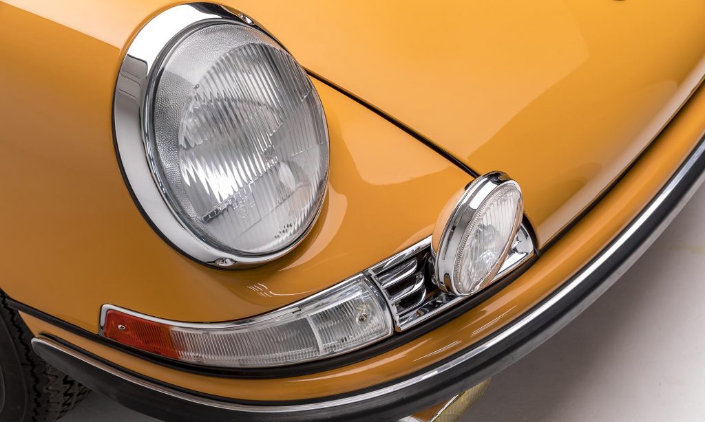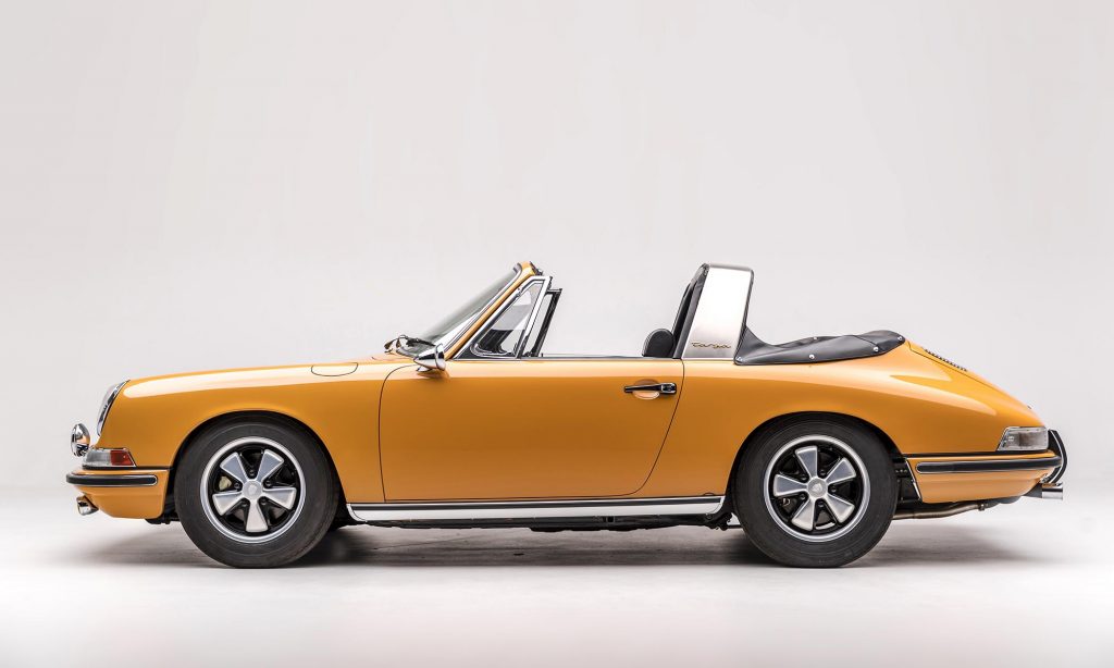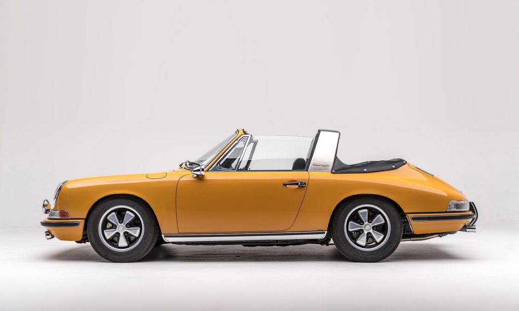 1968-as évjáratú ez a példány, még a műanyag hátsó szélvédővel, de már a 911S változatban. A kétliteres, hathengeres bokszermotor teljesítményét ebben 130-ról 160 lóerőre növelték, és az ikonikussá vált Fuchs felnik is ekkor jelentek meg.