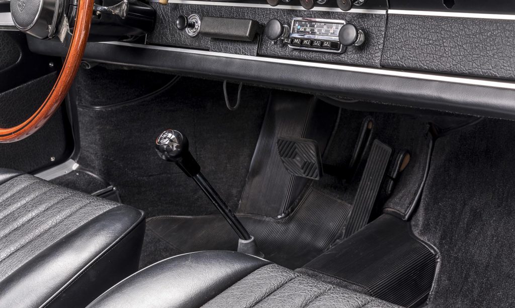 Feltűnhet, hogy az autóban hagyományos váltókar van, de nincs kuplungpedál: ez a ritka Sportomatic kivitel, robotizált kuplunggal, amivel az amerikai vevők életét könnyítették meg.