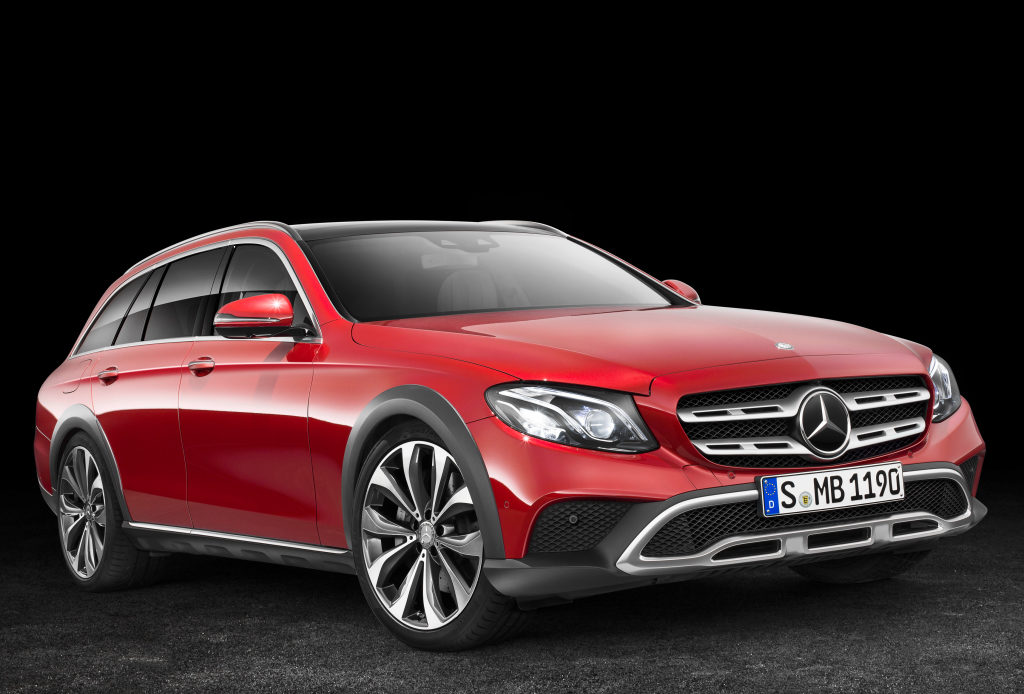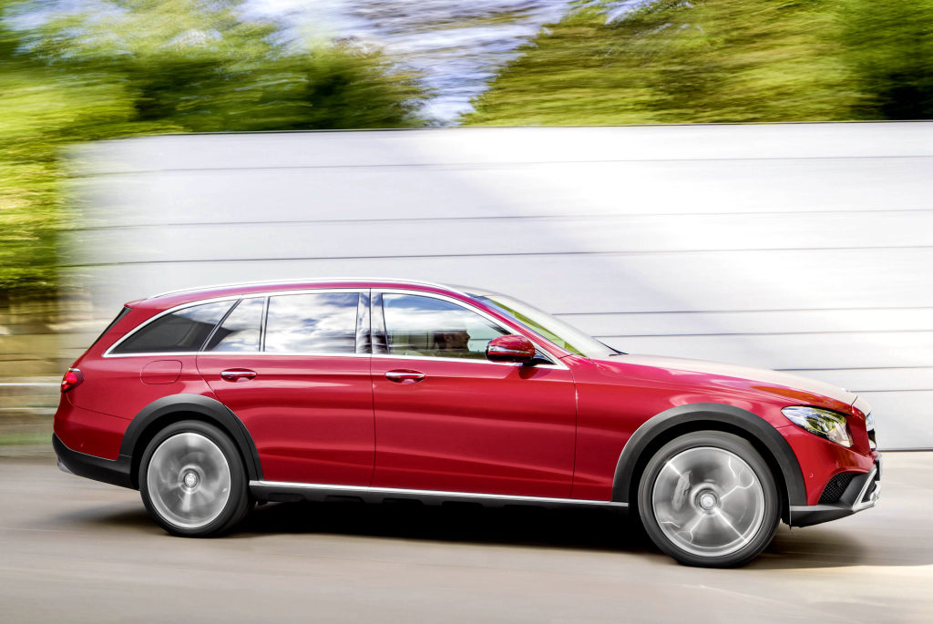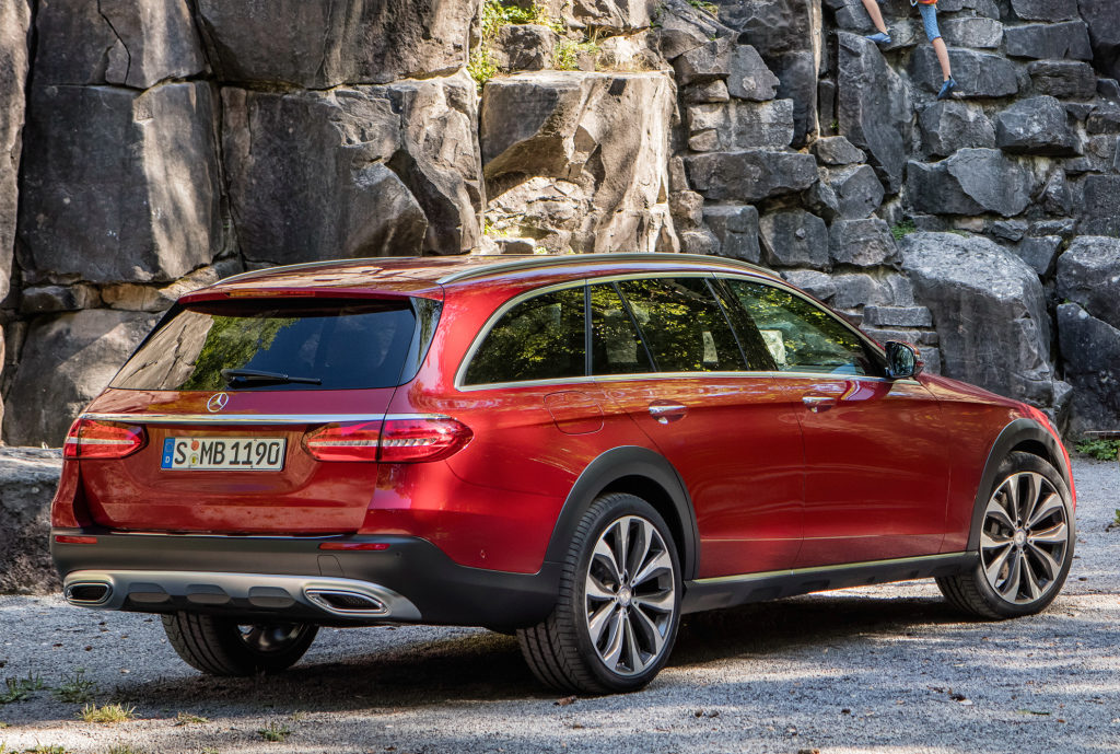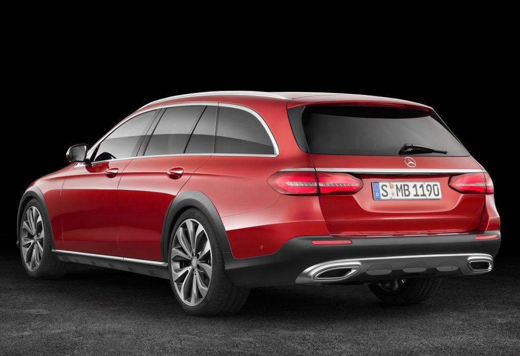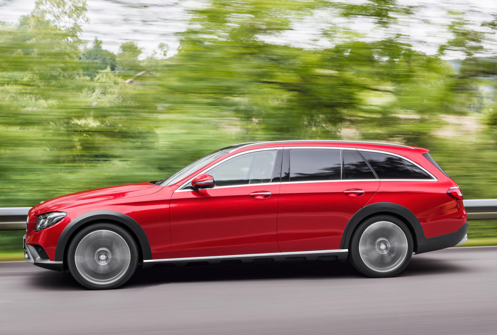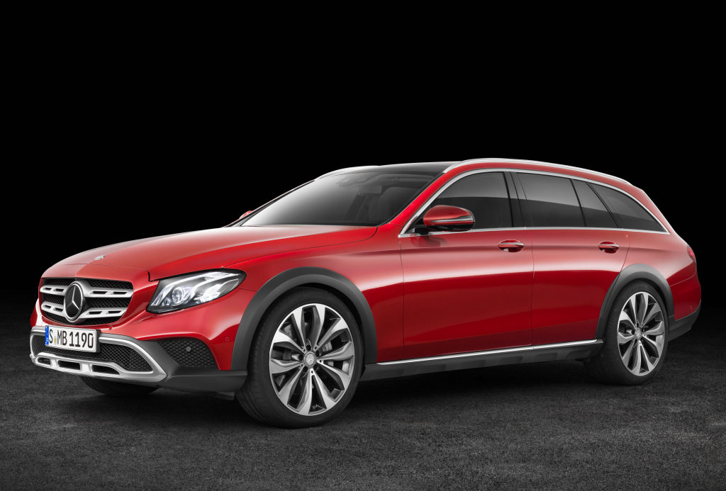 Széria természetesen a 4Matic összkerékhajtás, és az üzemmód-kapcsolónak terepfokozata is van. A karcolásoktól fényezetlen fekete borítás óvja a küszöböket, a kerékjáratokat és a lökhárítókat. Elsőként a 194 lóerős E 220 d mutatkozott be, de később hathengeres is lesz belőle.