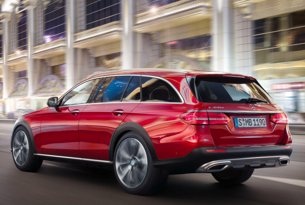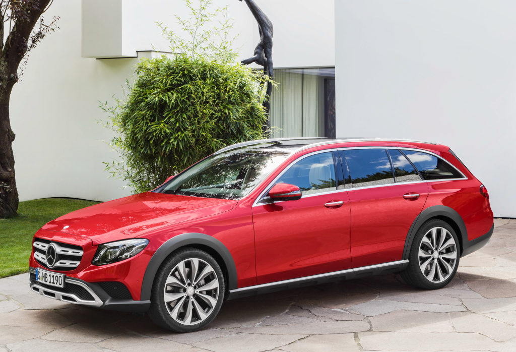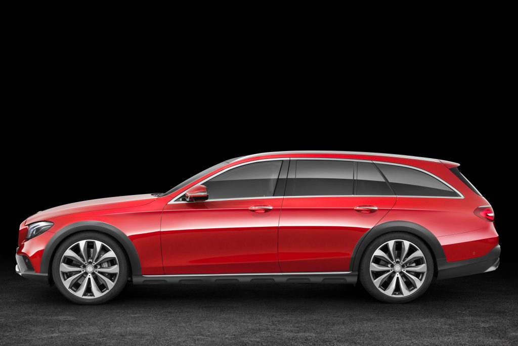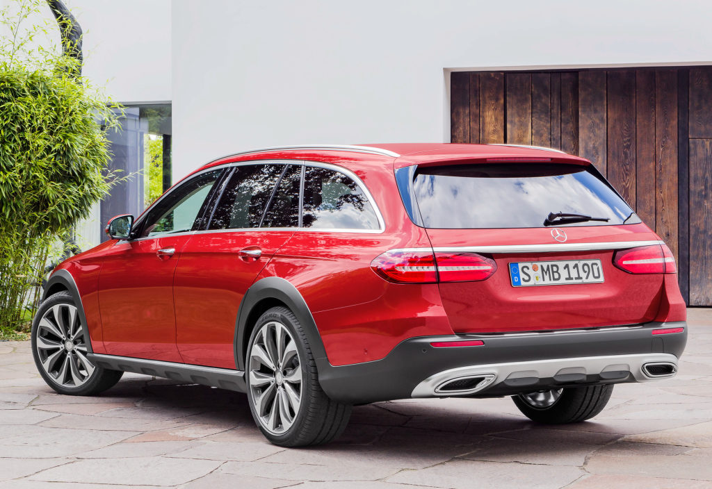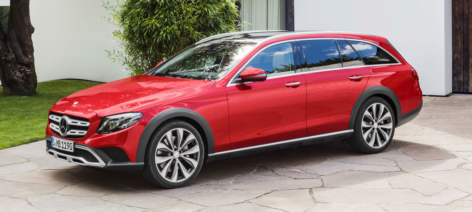 Széria természetesen a 4Matic összkerékhajtás, és az üzemmód-kapcsolónak terepfokozata is van. A karcolásoktól fényezetlen fekete borítás óvja a küszöböket, a kerékjáratokat és a lökhárítókat. Elsőként a 194 lóerős E 220 d mutatkozott be, de később hathengeres is lesz belőle.