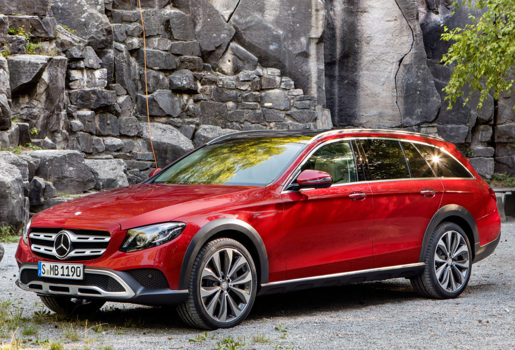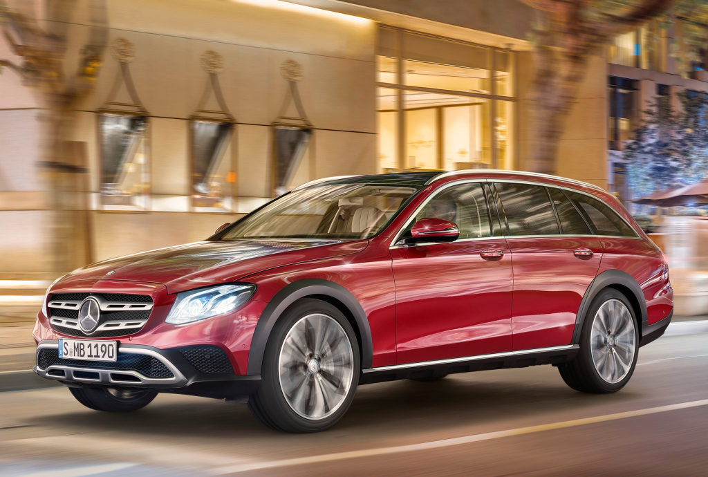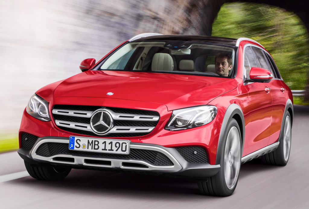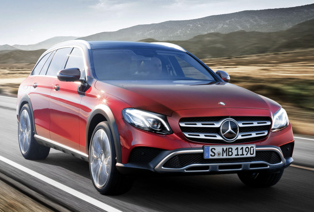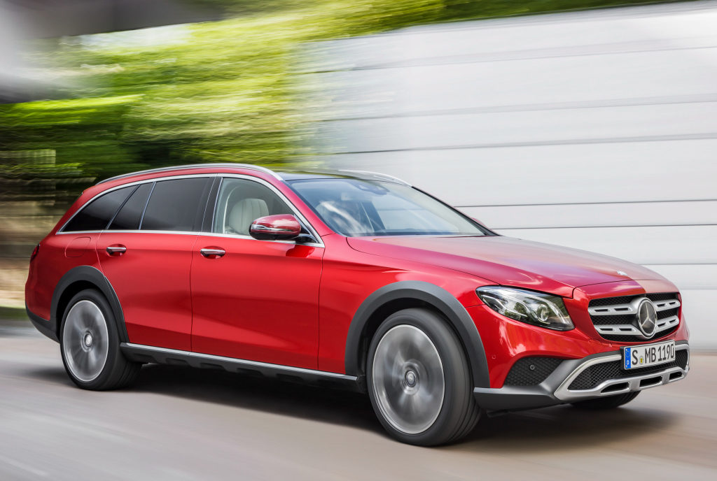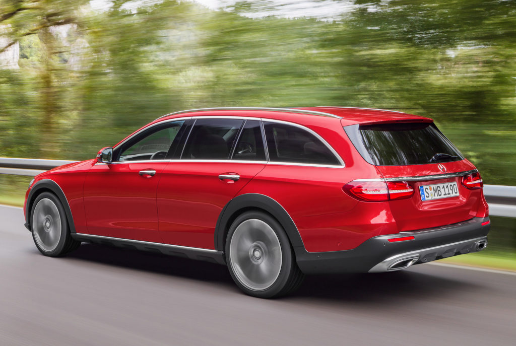 Széria természetesen a 4Matic összkerékhajtás, és az üzemmód-kapcsolónak terepfokozata is van. A karcolásoktól fényezetlen fekete borítás óvja a küszöböket, a kerékjáratokat és a lökhárítókat. Elsőként a 194 lóerős E 220 d mutatkozott be, de később hathengeres is lesz belőle.