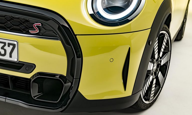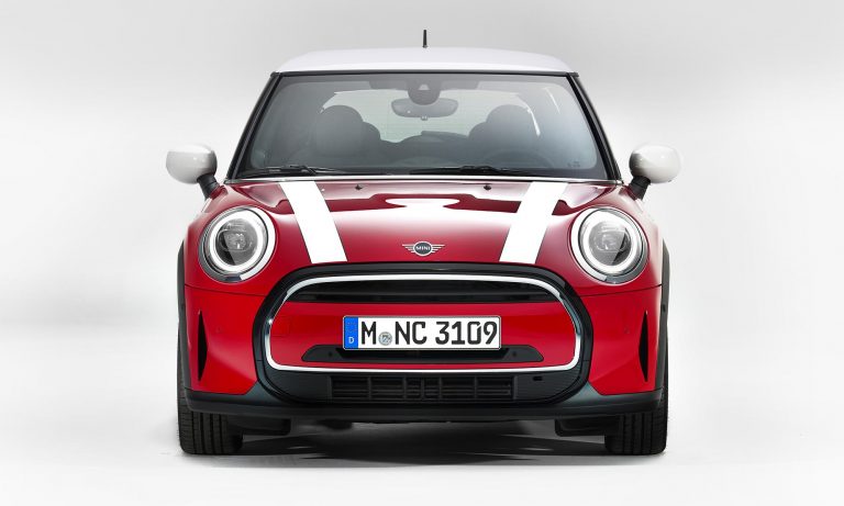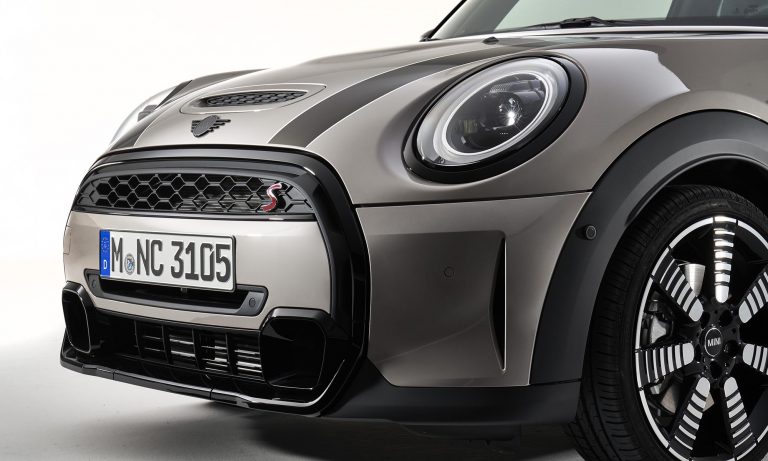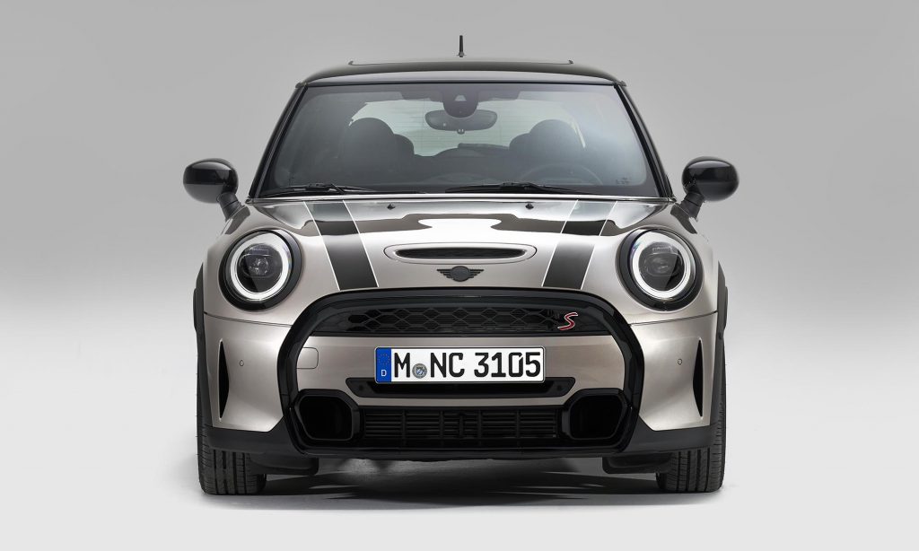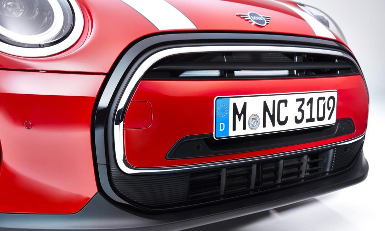 A legújabb MINI-t az új arcáról ismerheted meg, a hűtőmaszk betétje fényes fekete helyett a karosszéria színében pompázik,