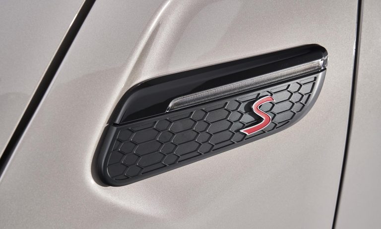 és az egészet egy nagyobb fekete keret veszi körül. Az átszabott lökhárítóra aerodinamikai nyílások kerültek, de eltűntek a ködlámpák, a feladatukat a LED-es mátrixfényszóró látja el, ami mostantól széria, akárcsak a britzászló-mintás hátsó lámpa.