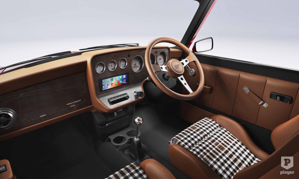 Ian Callum változatának belső terét is ők találták ki, fabetéttel, bőrkárpittal, fém kapcsolókkal és kockás kárpittal, egy kis képernyőn még Apple CarPlay is van. Az egyedi Mini már rendelhető, 75 ezer fontról indul az ára, ami 35 millió forintnak felel meg.