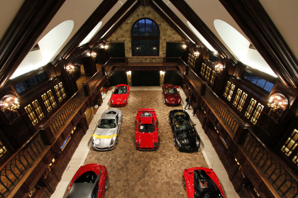 288 GTO, F40 és Enzo is van ebben a kollekcióban, ami nem is csak az autók miatt érdekes, hanem az épület miatt is, ahol tárolják őket. A faborítású csarnokban fentről, a galériáról is lehet gyönyörködni a gépekben, a legszebbet forgószínpad mutatja meg minden oldaláról.