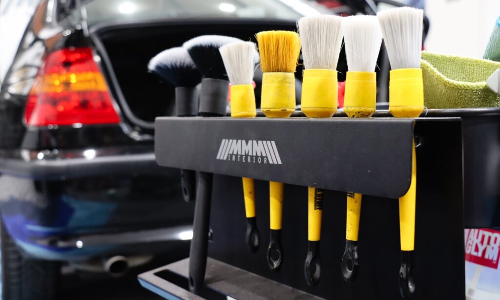 Órákig tudom nézni a Youtube-on a car detailinges videókat, és ezzel nincsenek másképp az MMM-nél sem. Az utastér kipakolása után mesteri alapossággal varázsolják újjá és rendszerezik a beltéri elemeket. Ehhez a kis zsúrkocsin ott sorakoznak a tisztítószerek és a különböző méretű és finomságú ecsetek. Mivel nagy valószínűséggel az autóm utoljára a gyárban volt ennyire szétkapva, ezért az ülések alól előbukkan az eredeti adatlapja, egy cukorka és némi aprópénz.