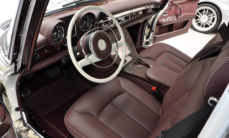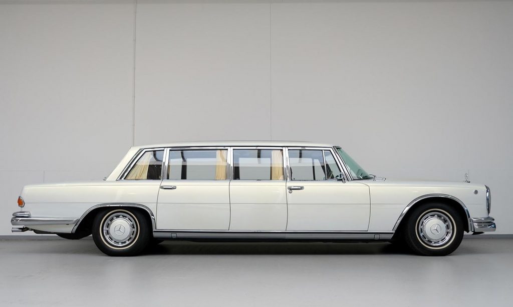 1963-ban mutatták be, és egészen a nyolcvanas évek elejéig gyártásban volt a Mercedes-Benz 600, aminek hosszított Pullman változatát hírességek, államfők és uralkodók vásárolták. A képeken látható példánya 1975-ből származik, és a tulajdonosa nemcsak teljesen felújíttatta, de a Maybach limuzin modern kényelmi extráit is beépíttette.