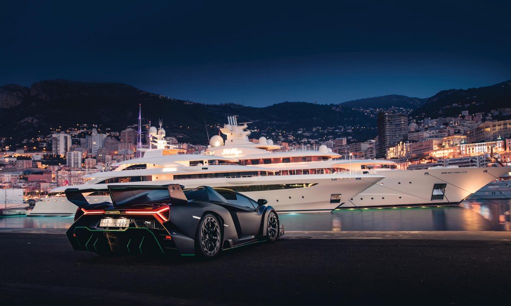 A Veneno az olasz autómárka alapításának ötvenedik évfordulójára készült, alig néhány példányban, és az egyik most eladóvá vált. Nem is fotózhatták volna jobb helyen a ritka Lamborghinit, mint Monacóban.