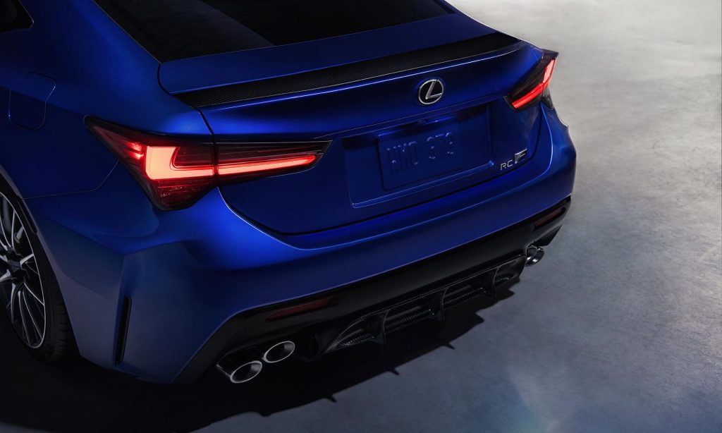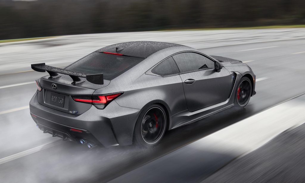 Szénszálas anyagból készült légterelők kerültek rá, ebből az anyagból van a motorházfedél és a tető is, így 70-80 kilogrammal könnyebb a többi RC F-nél. Az állítható helyett fix hátsó szárnyat kapott, ami 26 kilogramm extra leszorítóerőt jelent.