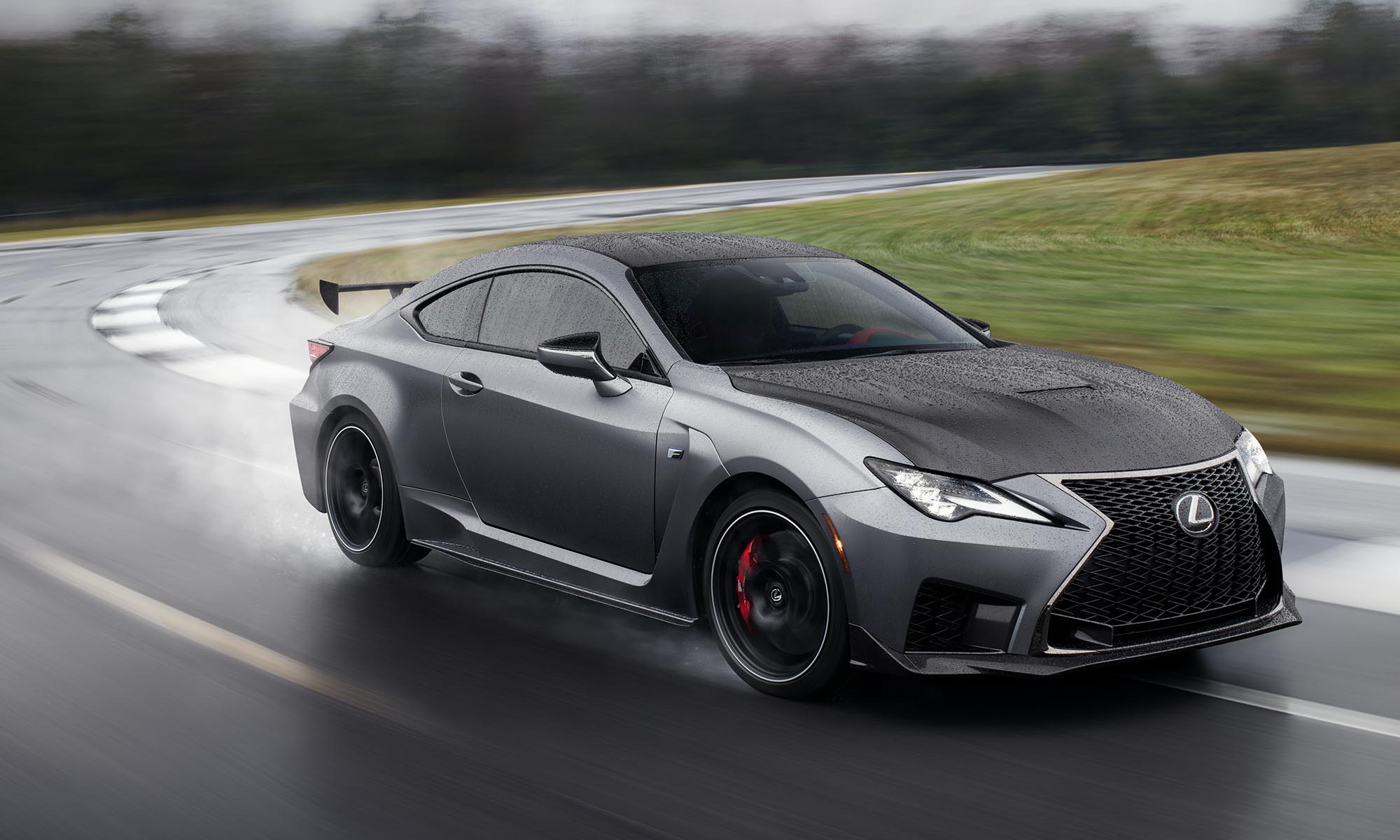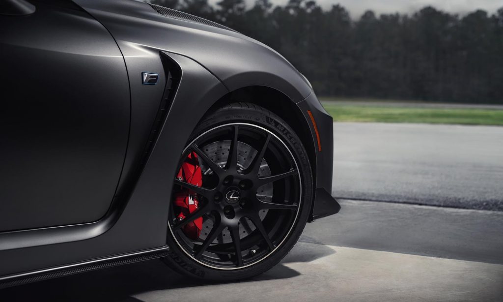 A csak fehérben és matt szürkében rendelhető Track Edition külsejét a 19 colos BBS kerekek is vadítják, ezek dizájnját az RC F GT3 versenyautó ihlette. A kerekek mögött Brembo karbon-kerámia fékek dolgoznak, és ezzel mintegy 25 kilogrammal csökkent a rugózatlan tömeg.