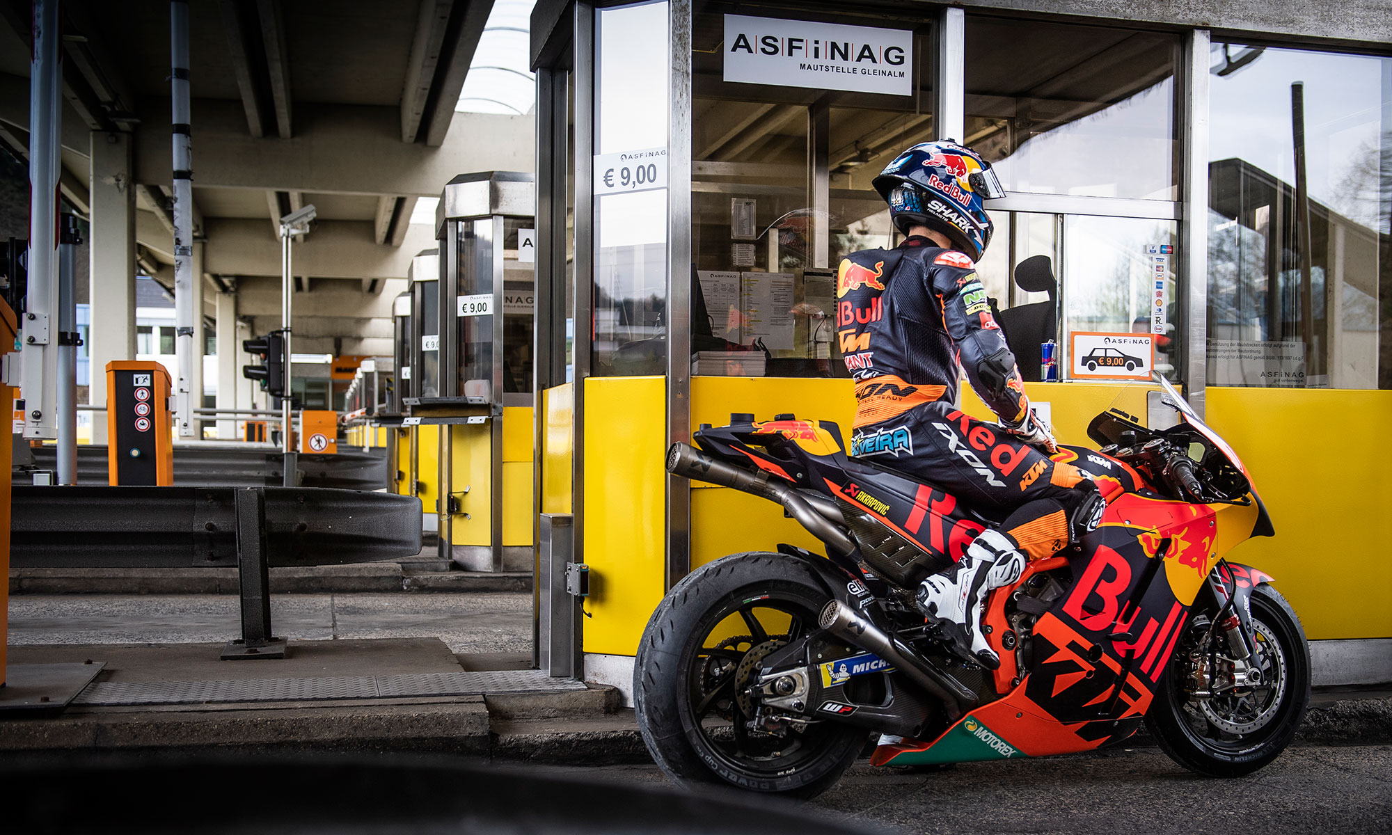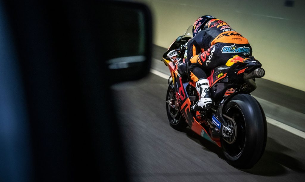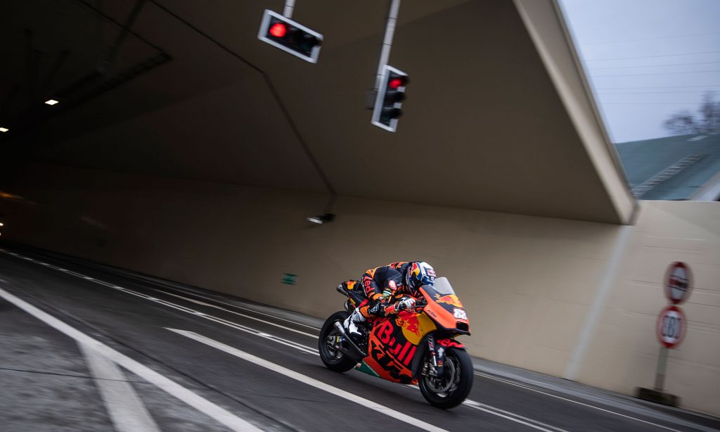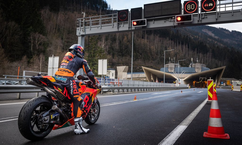 Miguel Oliveira a MotoGP-ben használt KTM versenygépére ült, az alig 160 kilogrammos, és 270 lóerős motorral száguldott végig a nyolc kilométeres alagúton.