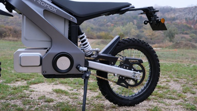 Ami igazán meglepő villanyautós tapasztalatok birtokában: egy ilyen elektromos terepmotor még könnyebb is, mint a hasonló tudású, erejű benzines! A Tokodon látott gépek 55-70 kilósak voltak akkumulátorral együtt, de még a szemre legnagyobb Tromox is csak egy mázsa, míg egy 125-ös benzines enduró inkább 120-130 kiló.