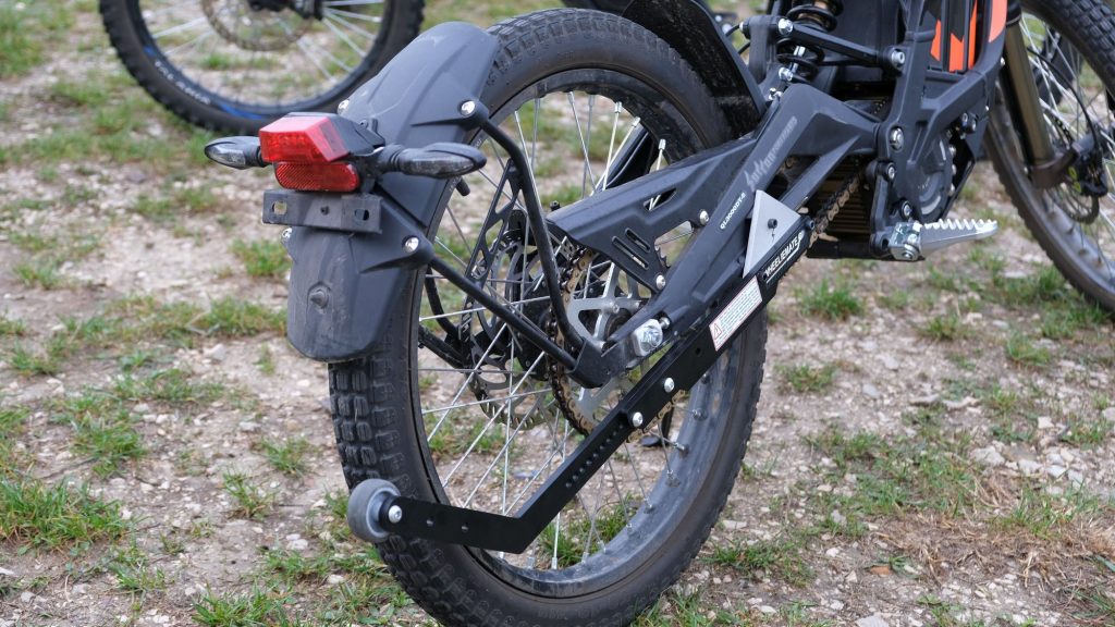 Az elektromos terepmotor eleve sokkal keskenyebb, mozgékonyabb tudd lenni, mint a benzines. Nincs rajta se kipufogórendszer, se benzintank, se semmilyen pedál. Bizony, pedál sincs, hiszen se váltó, se kuplung – a villanymotornak ezekre nincs szüksége –, a hátsó fék pedig felköltözhet a kuplungkar helyére. Olyan sincs többé, hogy a motor nem indul: a villanymotort nem kell berúgni vagy beindítózni, elég bekapcsolni.