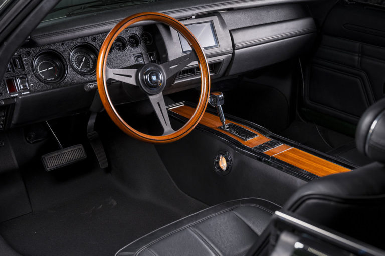 A Chargerrel belül is tökéletes munkát végeztek, hiszen bár az autó pontosan úgy néz ki, mint az eredeti, valójában szinte minden új benne: az első üléseket például az Upholstery Unlimited készítette, és a kocsi egy Alpine hangrendszert is kapott, bár ilyen autóban az egyetlen zene, amit szívesen hallgatnánk, a dobhártyaszaggató motorbőgés lenne.