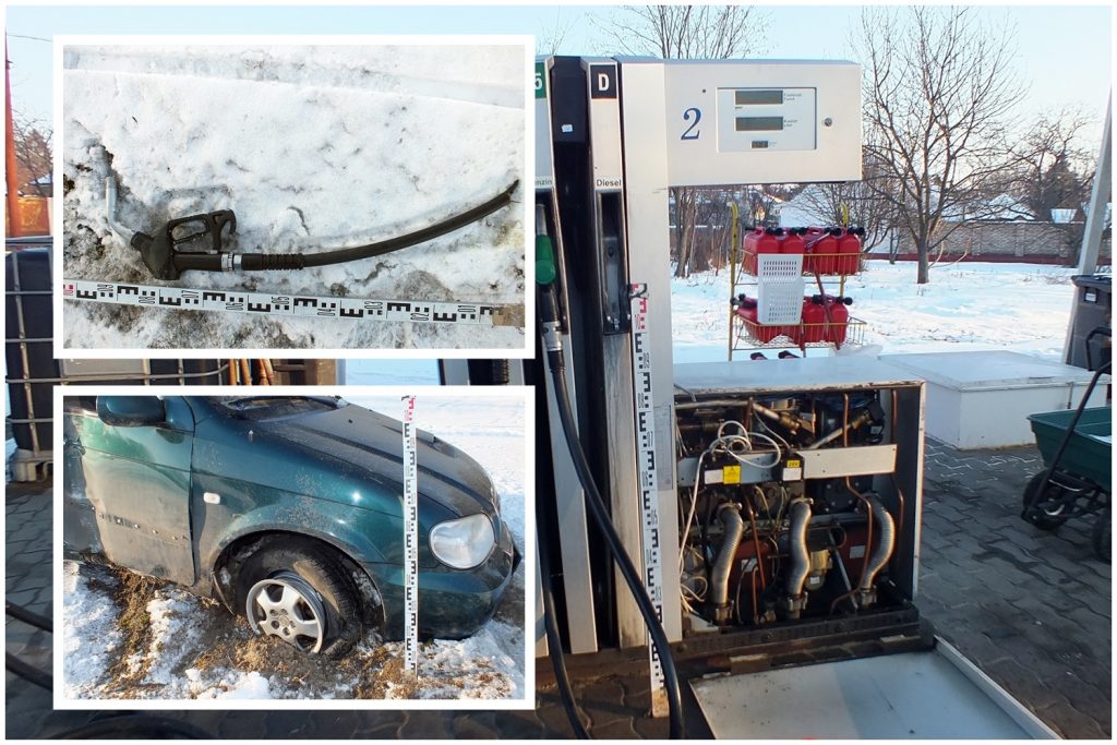 A huszonhat éves helyi férfi úgy gondolta, útját inkább egy Kia Carnevallal folytatja, úgyhogy lopott egyet. Lopott rá rendszámot is egy Suzukiról, de azt nem szerelte fel túl jól, mert a benzinkútra már anélkül érkezett. Tankolt 37 litert, majd visszapattant a kocsiba, és fizetés nélkül elindult – meg anélkül, hogy a töltőpisztoly visszaakasztotta volna a helyére.