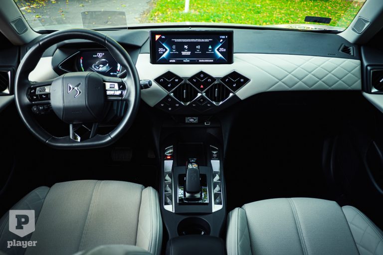 Na, de a lényeg úgyis a belső érték, ami pedig példátlanul gyönyörű és luxi. A DS rombuszformájú logója mindenhol visszaköszön, talán már egy kicsit too much kategória is, de ez semmit nem ront azon, hogy mennyire gyönyörű a fehér bőrbelső, az űrtechnológiára emlékeztető kezelőfelületek, és a többi.