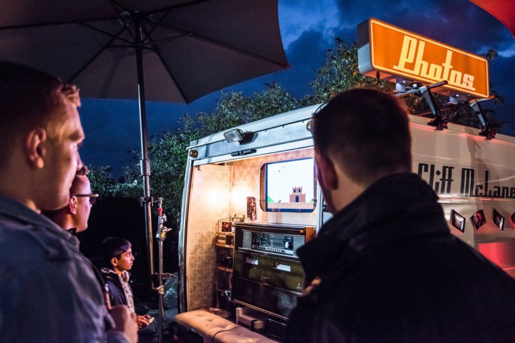 A furgon tele van a régi idők elektronikai eszközeivel, tévékkel, rádiókkal, telefonokkal, kamerákkal, de még videojátékokat és hangszereket is találsz benne. Mindezt a hetvenes-nyolcvanas évek stílusában tökéletesen berendezett belső teszi teljessé. Cliff McLane, mert így hívják a furgont, egy fotóautomataként működik, csak be kell ülni, és már készül is a kép.