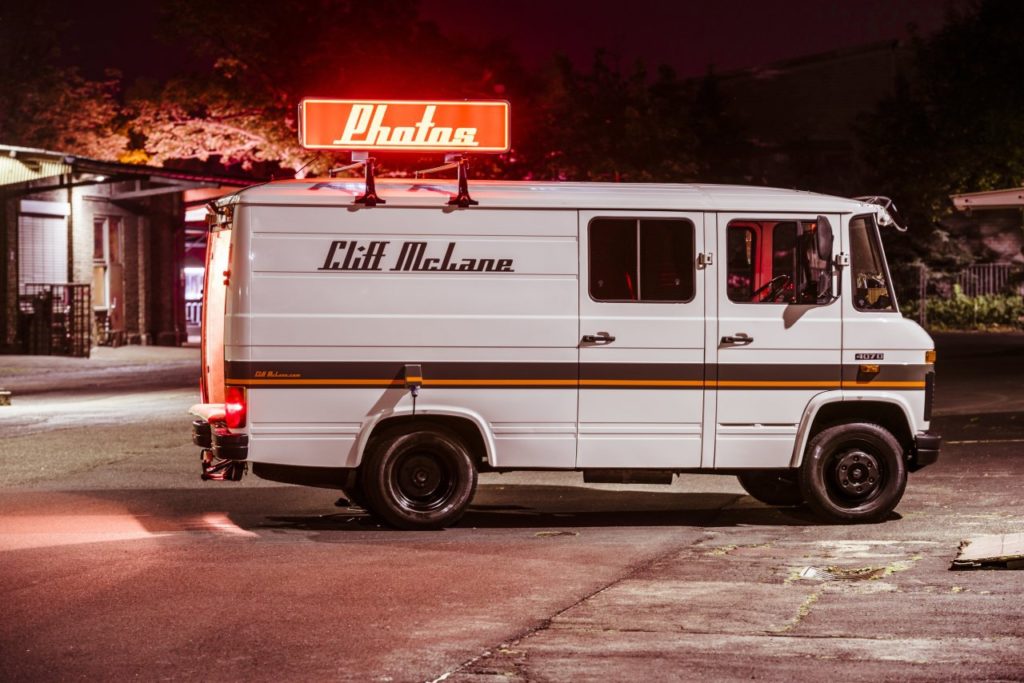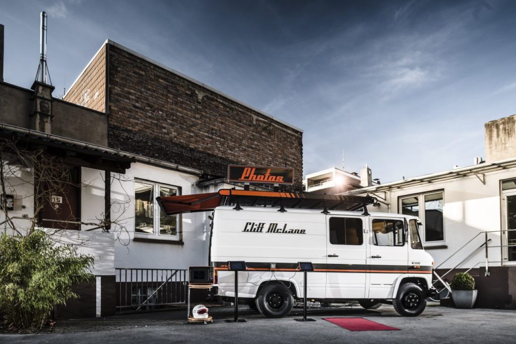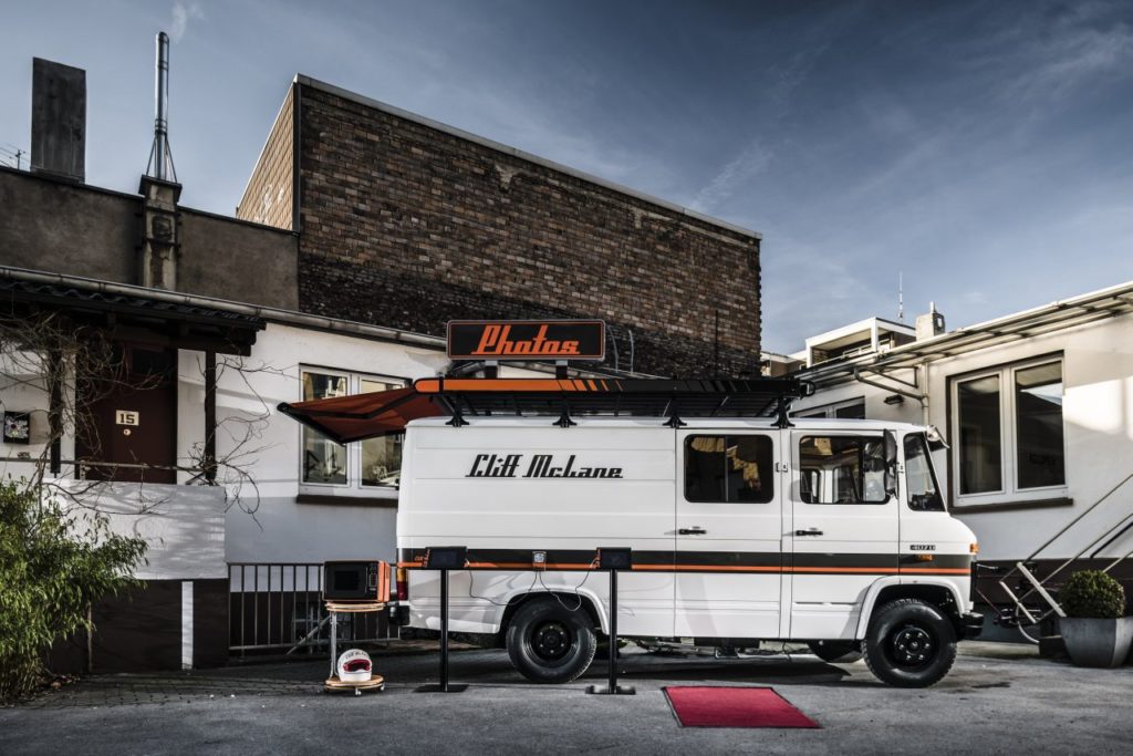 A hatvanas évekbeli Orion űrhajó kapitánya után a Cliff McLane nevet kapta az a Mercedes furgon, amit kreatív tulajdonosai mozgó fotóstúdióvá alakítottak, és a nevéhez illő módon régi fényképezőkkel, rádiókkal, videojátékokkal tették tele.