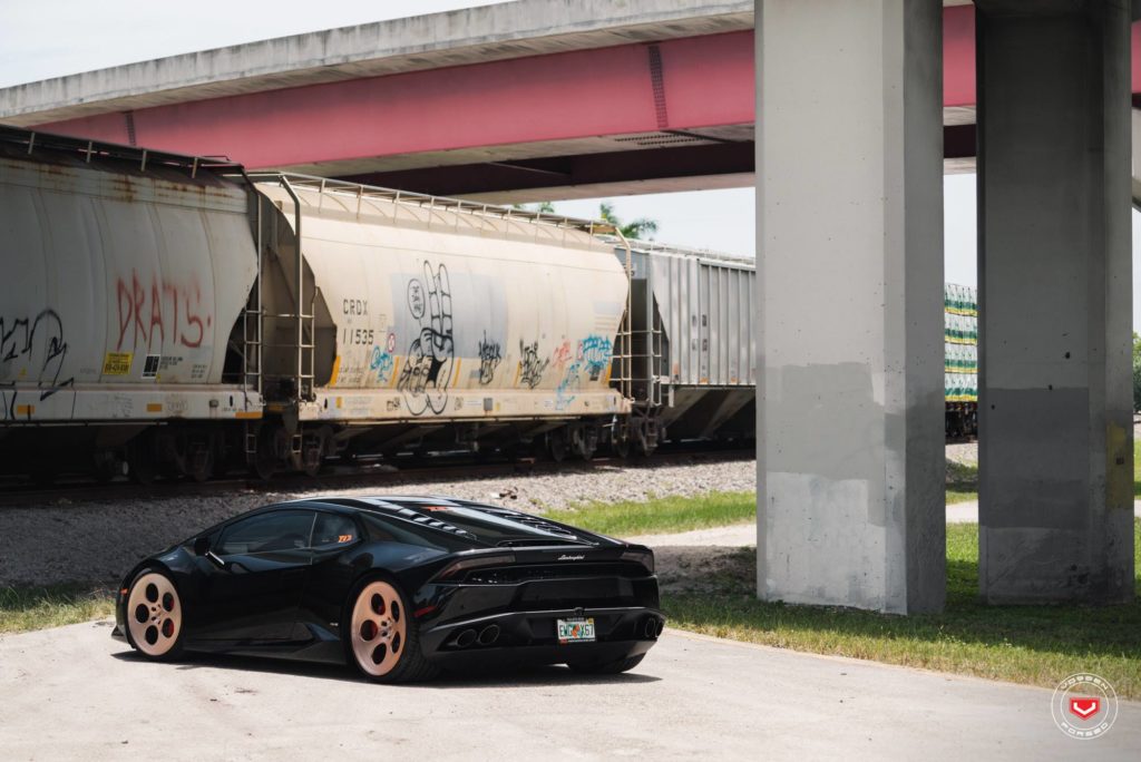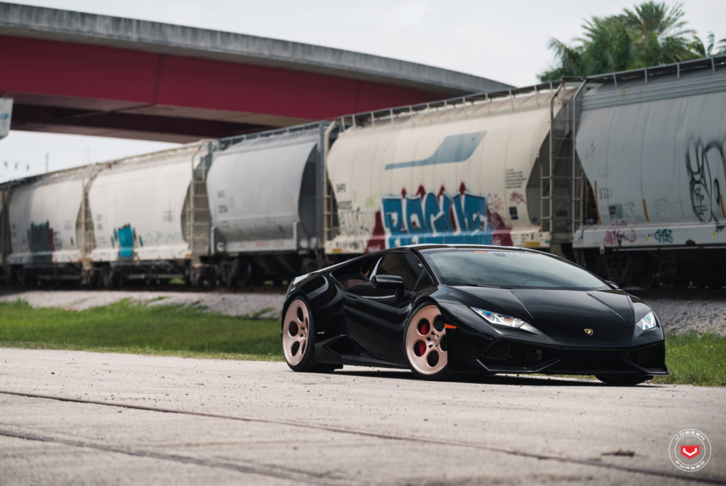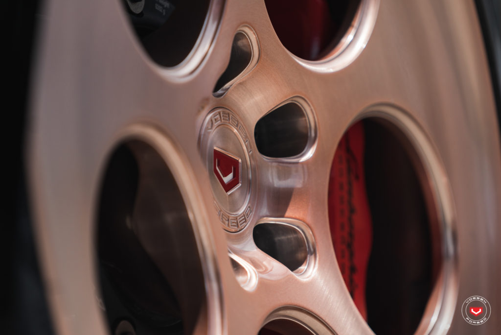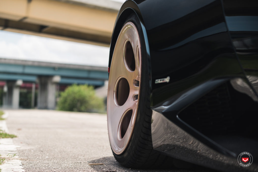 De a Vossen most elkészítette a legendás telefontárcsa-felni modern változatát 20 és 21 colos méretben, rozéarany színben, és elég volt csak feltenni a Huracánra, hogy lássuk, mennyire jól mutat vele.
