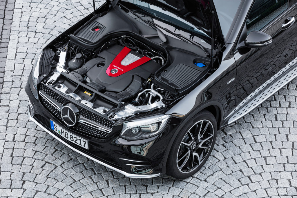 A hivatalos nevén Mercedes-AMG GLC 43 Coupé ugyanazt a 3 literes, biturbó V6-ost kapja, amelyet a márka többi sportmodelljéből ismerünk, itt is 367 lóerős teljesítményre képes, ami éppen héttel több, mint amire a BMW X4 M40i hathengerese képes. A legnagyobb nyomaték 520 Nm.