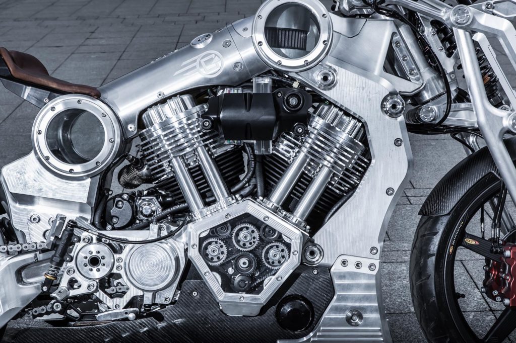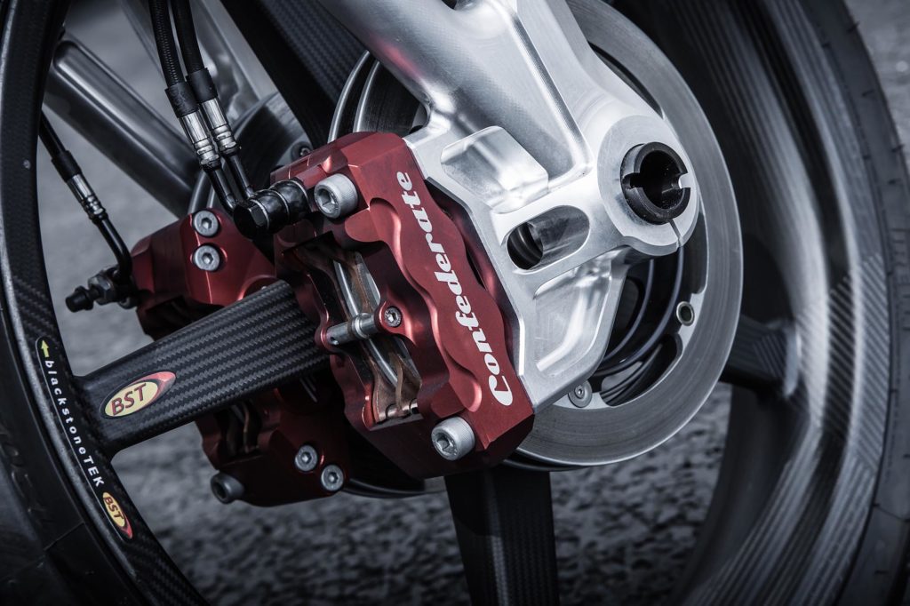 A motor vázát ugyanis a repülőgépiparban használatos alumíniumból marták ki, ezért könnyebb és merevebb is más típusoknál, a sárvédők és más elemek pedig szénszálas anyagból készültek. A motorja 2163 köbcentis, léghűtéses V-Twin, ami 147 lóerőre és 217 Nm nyomaték leadására képes, és képzelheted, hogyan megy, ha a Confederate motorja feltankolva sem nyom többet 250 kilogrammnál.