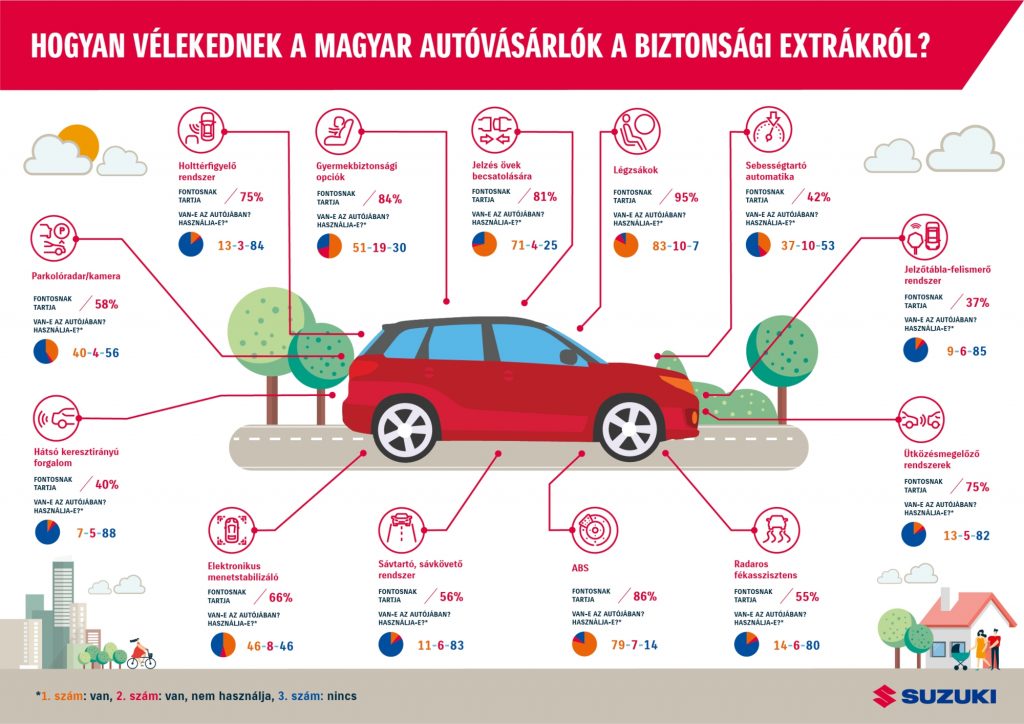 A Magyar Suzuki az Ipsos bevonásával – a 18–60 éves korosztály nemére, korára és lakhelyére vonatkozóan reprezentatív – kutatást végzett az autók biztonsági felszereltségének ismertségéről és megítéléséről. Az eredmény tanulságos.