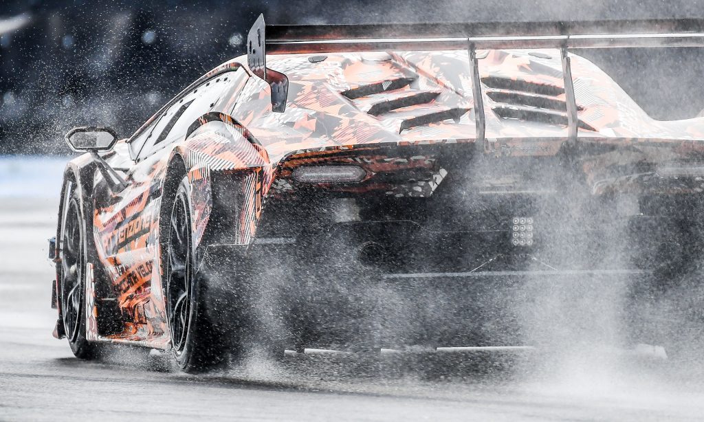 rutinos pilóta kell a tereléséhez. Az aerodinamikája is nagyon fejlett lesz, a Lamborghini szerint nagyobb leszorítóerőt termel a GT3-as versenyautónál is.