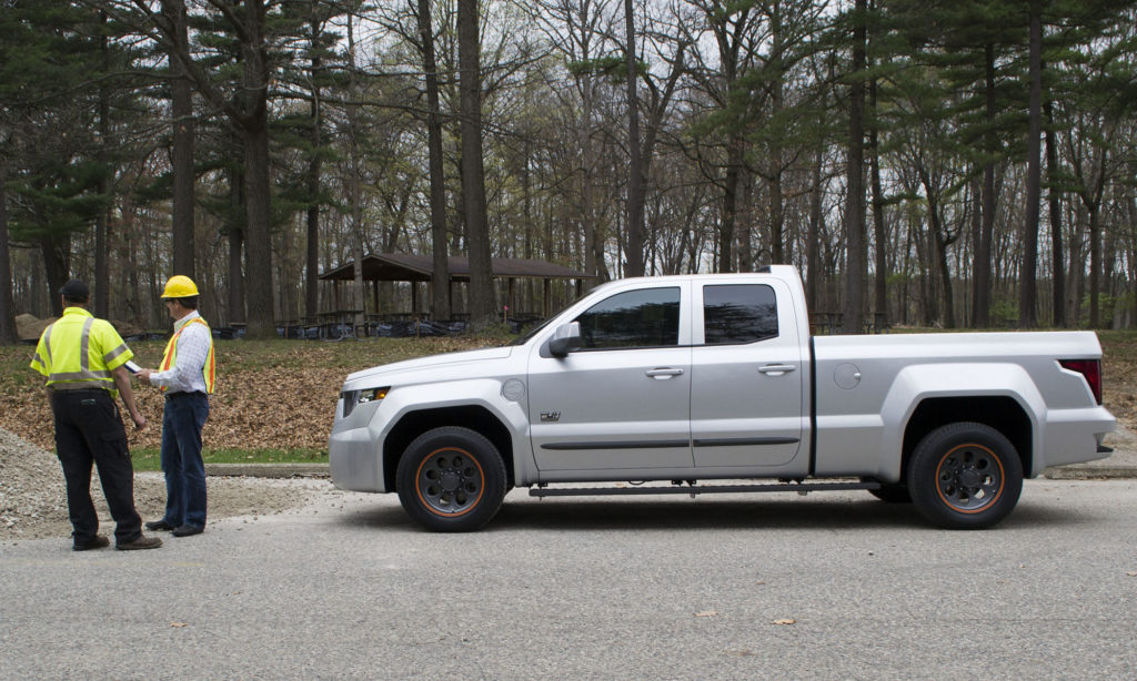 A Workhorse saját platósa a W-15 névre hallgat, és a formája legalább olyan szép, mint amilyen izgalmas a neve. A baltával szabott dizájn masszívnak akar látszani, de jól mutatja azt is, hogy mennyire nehéz újat mutatni az autódizájn bármely területén, még a platós teherautók között is. Az alapokat mindenesetre egy Chevrolet Silverado szolgáltatta.