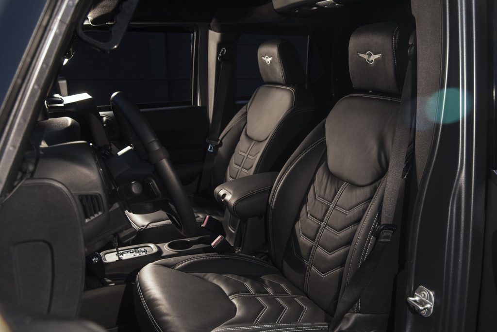 Pedig ez egyáltalán nem katonai célra épült, csak a stílusa idézi a harci gépeket, de valójában a minden luxussal teletömött G-osztály és Land Cruiser érdekes alternatívája akar lenni. Belül ennek megfelelően bőrüléseket, head-up displayt és 7,9 colos érintőképernyős rendszert találunk, mint bármelyik modern terepjáróban.