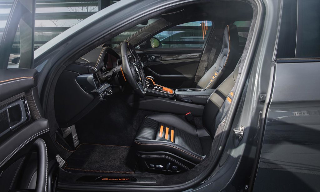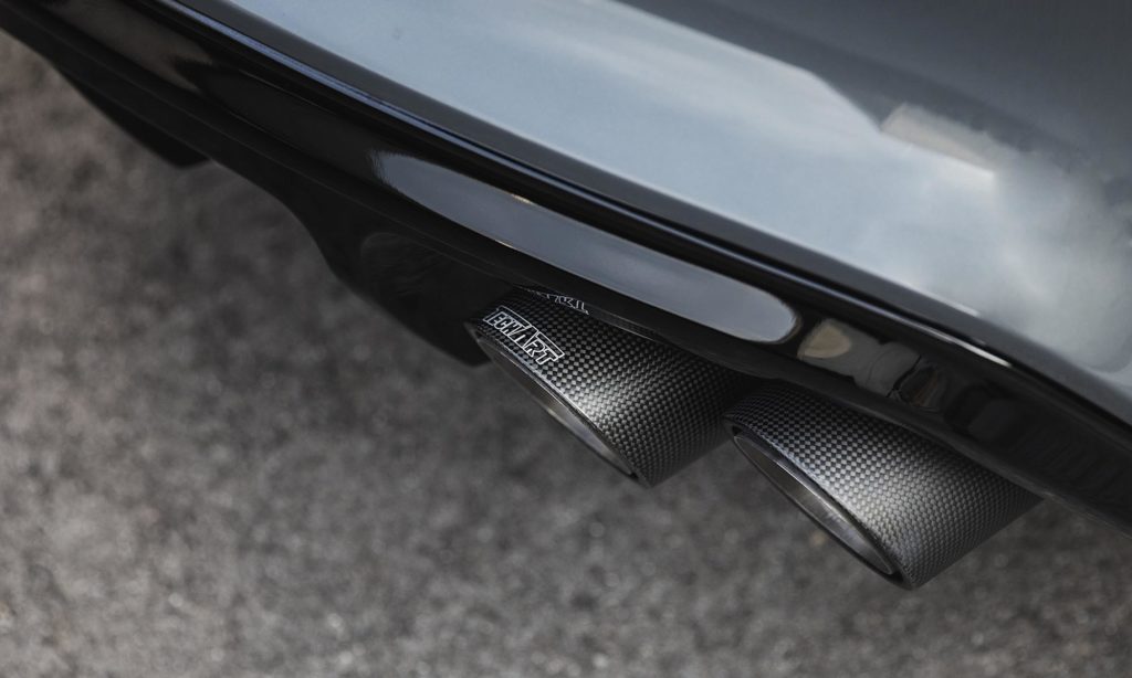 A Grand GT névre keresztelt kivitel 8 centiméterrel szélesebb a szériánál, ezt szénszálas anyagból készült idomokkal oldották meg. Persze ha már hozzányúltak a formához, akkor nagyobbak lettek a légbeömlők, és hangsúlyosabb a diffúzor hátul, ahonnan összesen négy kipufogóvég kandikál ki. A kerekek is nagyobbak, 22 colosak, mögöttük színezett a féknyereg.