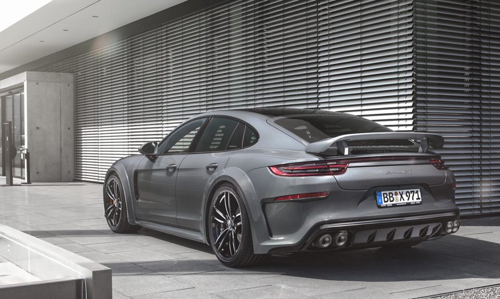 Furcsa módon a TechArt éppen a Panamera legmenőbb részletét, a gombnyomásra vagy automatikusan nyitható szárnyat vetette el, és egy hagyományos, bár jókora, messziről is jól látható légterelővel helyettesítette.