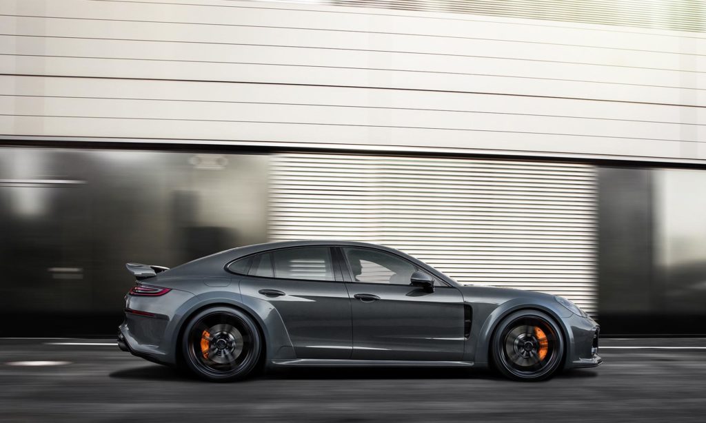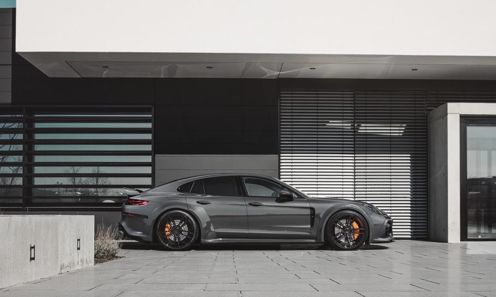 A Panamera már szériaváltozatban is közel két méter széles, ami jót tesz a megjelenésének, de aki próbált már szűk parkolóhelyre beállni ezzel a Porschével, biztosan észlelte a nem mindennapi méreteit. Ez a manőver a képeken látható autóval még nehezebb lesz, a TechArt ugyanis tovább szélesítette a Panamerát, méghozzá nem is kevéssel.