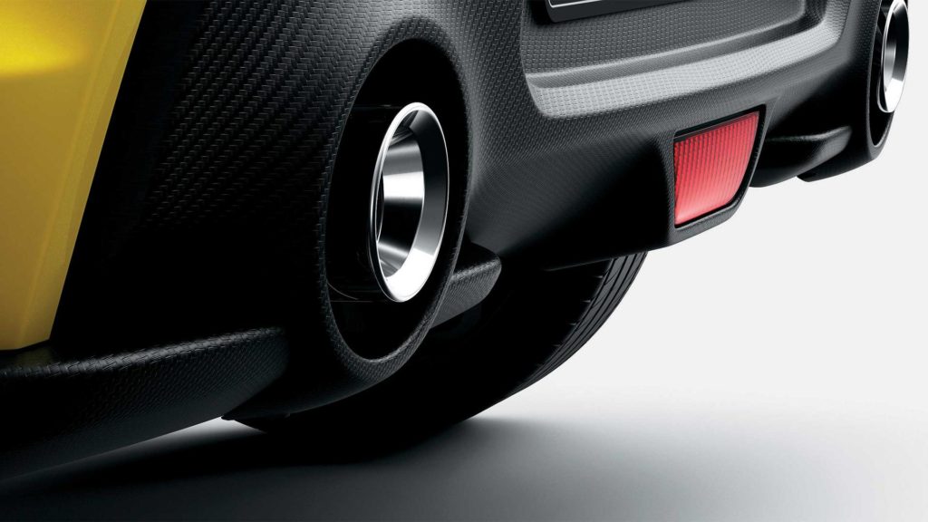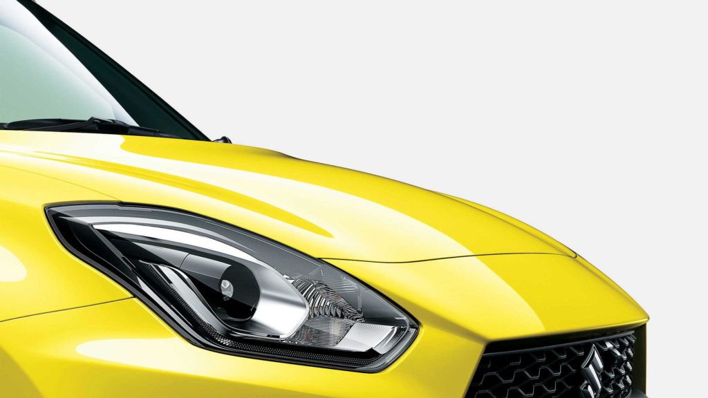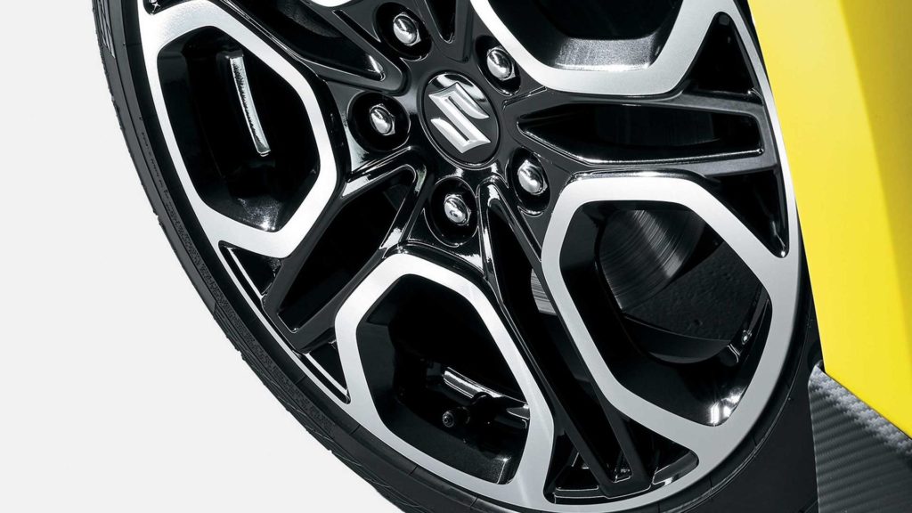 Formára nem sokban tér el a szériaváltozattól, de az élénk sárga szín, a nagyobb légbeömlők és a nagyméretű, kéttónusú könnyűfém kerekek azért egyértelműen dögösebbé teszik. Még nem láttuk hátulról az autót, de a Suzuki most megmutatta, hogy az előző szériák jellegzetessége, a kétoldalt kivezetett hangsúlyos kipufogóvégek az új modellen is rajta lesznek.