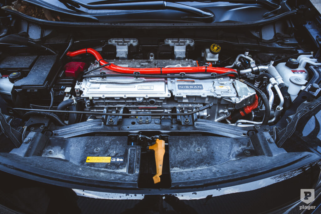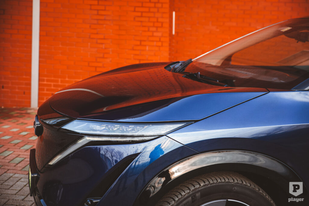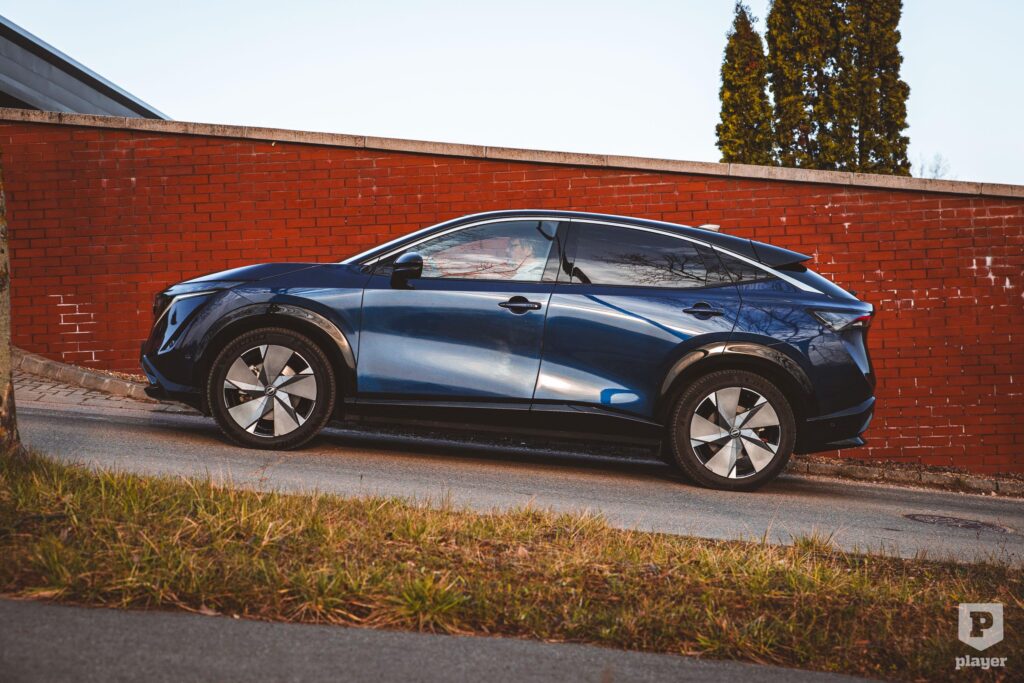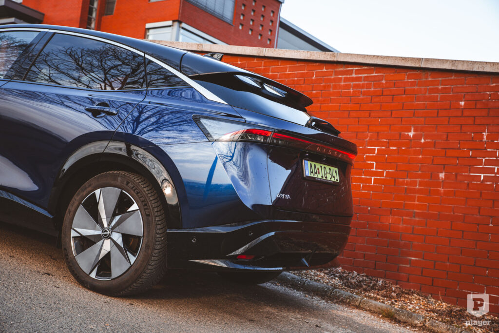 Elegánsan elnyújtott terepkupéforma, jókora, brutalista keréktárcsák, magas, meredek, hűtőnyílás nélküli orr, rajta a márkaazonosításhoz minimálisan szükséges nissanos arculati elemekkel, finoman kidolgozott, szép fényekkel díszített far: ezek az Ariya legszembetűnőbb formai jellegzetességei. A divatosság azonban folyamatos figyelmet igényel majd a tulajdonostól, ha meg akarja őrizni a kocsi gyári szépségét, mert az Ariya összes peremfelülete sérülékeny, fényesre lakkozott műanyag.