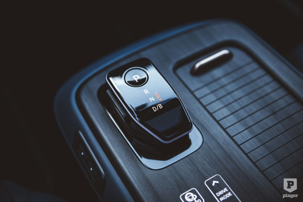 Az Ariya két különlegessége a szintén elektromosan működő középső kesztyűtartó és a két első ülés között a rajta lévő irányváltóval és kezelőpanellel együtt gombnyomásra előre-hátra tologatható könyöklő.