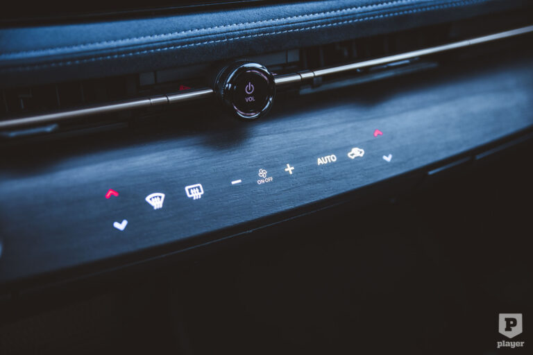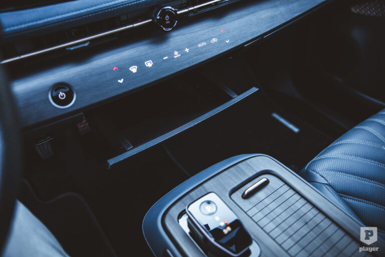 A legcsodálatosabb pedig mindezekben a különlegességekben az, hogy a használhatóságot egyáltalán nem befolyásolják. Erős aggodalommal nyúltam a finom erezetű fán átvilágító ikonok felé, de a haptikus visszajelzést is adó pszeudogombok ezen a csúszás- és foltmentes felületen bebizonyították, hogy különálló fizikai gombok nélkül is lehetséges autóban is egész jól használható sci-fi kezelőfelületet kialakítani! A kormány fogása kiváló, hosszú úton jól jön, hogy alul átfogva, kényelmesen ölbe engedett kézzel is lehet tartani. A hajlított kettős kijelzőn pedig hamar átláthatóan, megtanulhatóan olvashatók le az infók, kezelhetők a mélyebb funkciók.