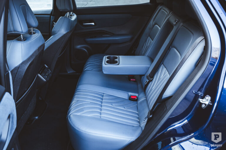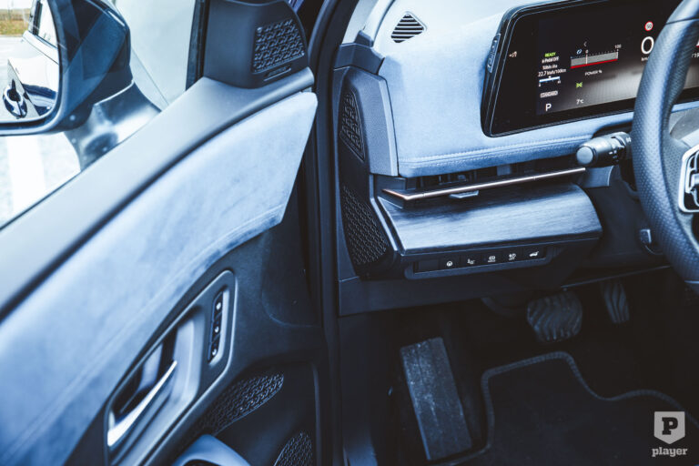 Az egyik, hogy az Ariya vagy másfél kategóriával kisebb, így belül minden irányban szűkebb a bajor óriás-villany-SUV-nál. A másik, hogy a Nissannak a japán belsőépítészetből vett dizájnmotívumokkal sikerült egészen egyedi hangulatot adni az utastérnek. Jó játék felfedezni ezeket a dekorelemeket, a legváratlanabb helyeken is képes felbukkanni egy-egy finoman kimunkált kárpitdarab vagy díszítőpanel.