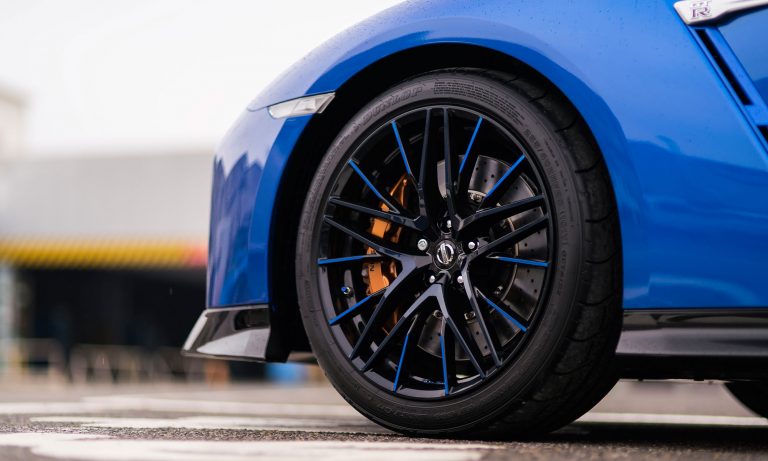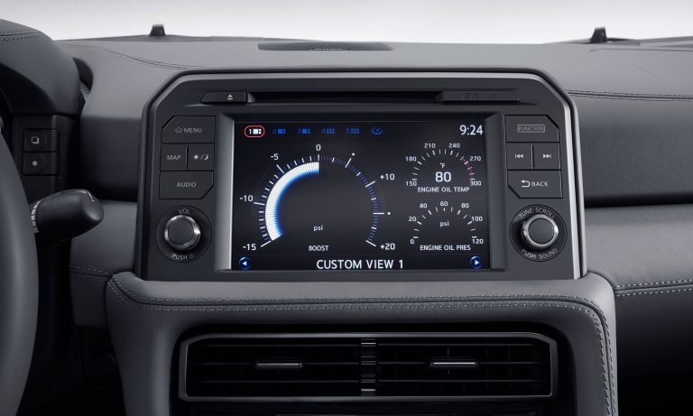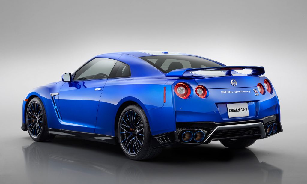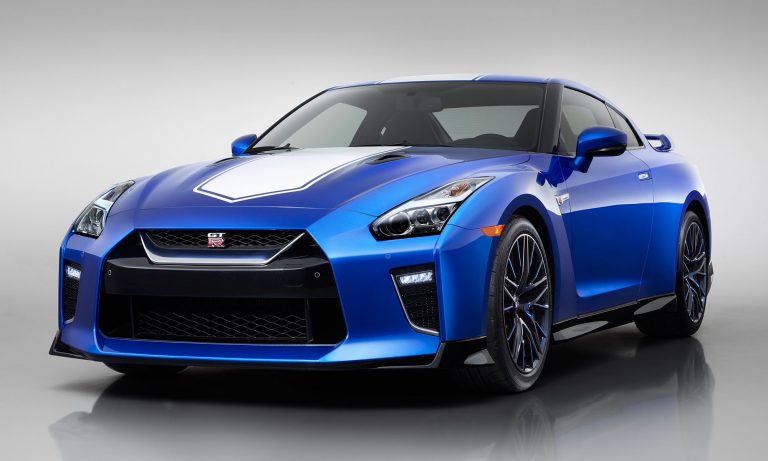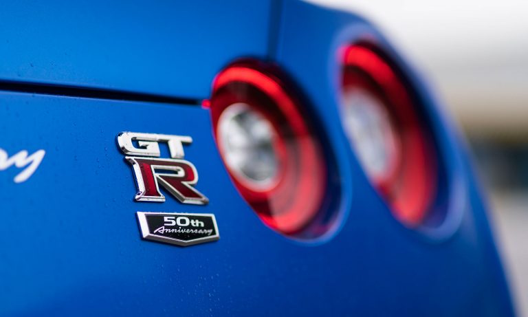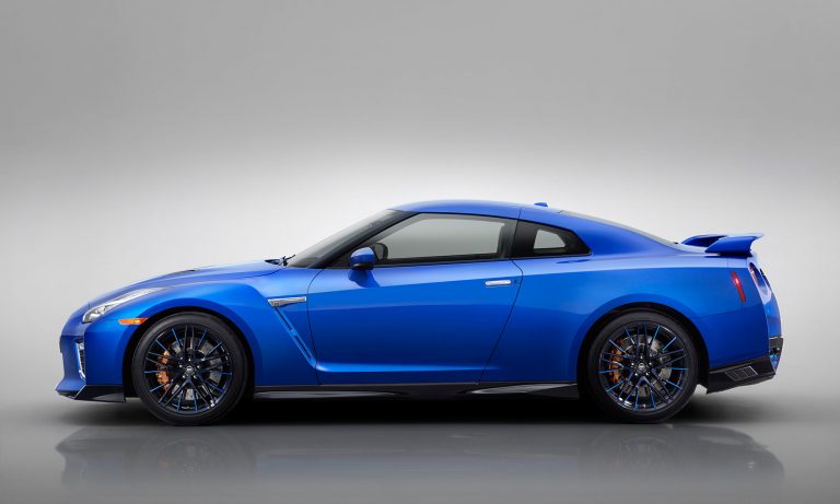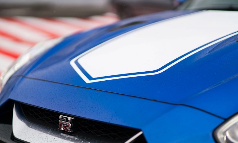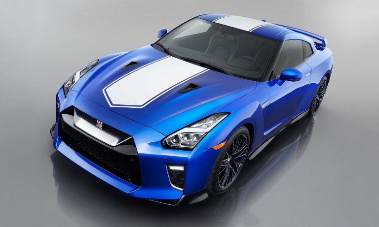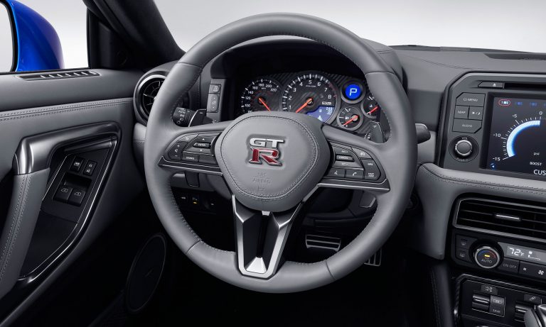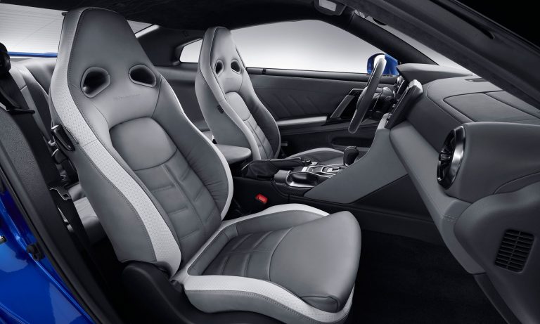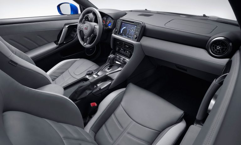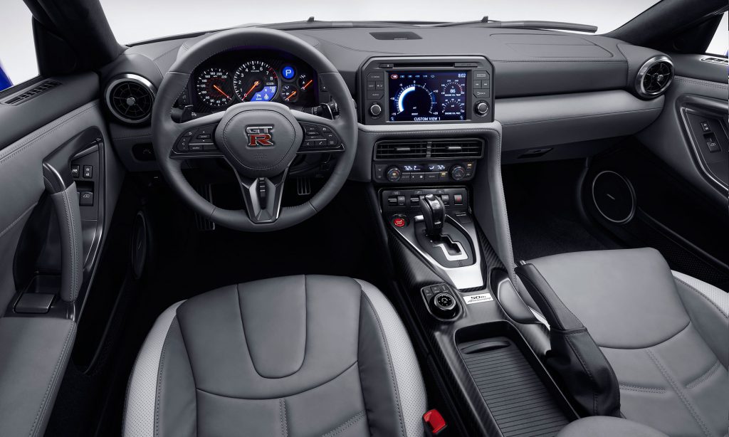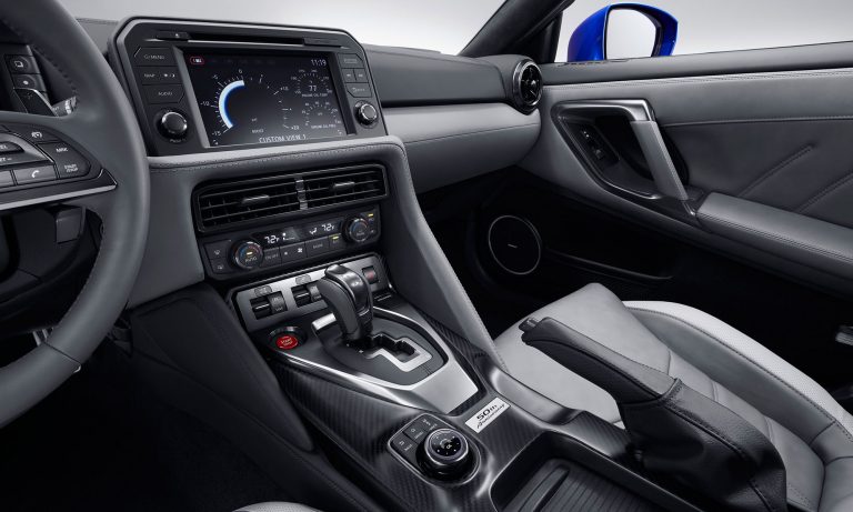 a fehér csíkozás pedig a korai Skyline GT-R versenyautók festését idézi. A belsejét szürke bőrrel vonták be, és bár a 3,8 literes biturbó V6-os motorja ezúttal is 570 lóerős, de az új turbótöltőknek köszönhető, hogy kisebb fordulatról is jobban gyorsul.