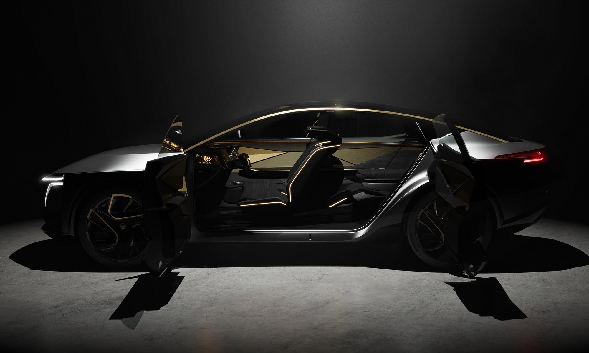 Az áramvonalasított karosszéria egy felsőkategóriás autót sejtet, amit a mai divatnak megfelelően 22 colos kerekekkel és magasított futóművel szereltek. A képernyővel teli utastere is futurisztikus, az ülések nem a megszokott elrendezést követik.