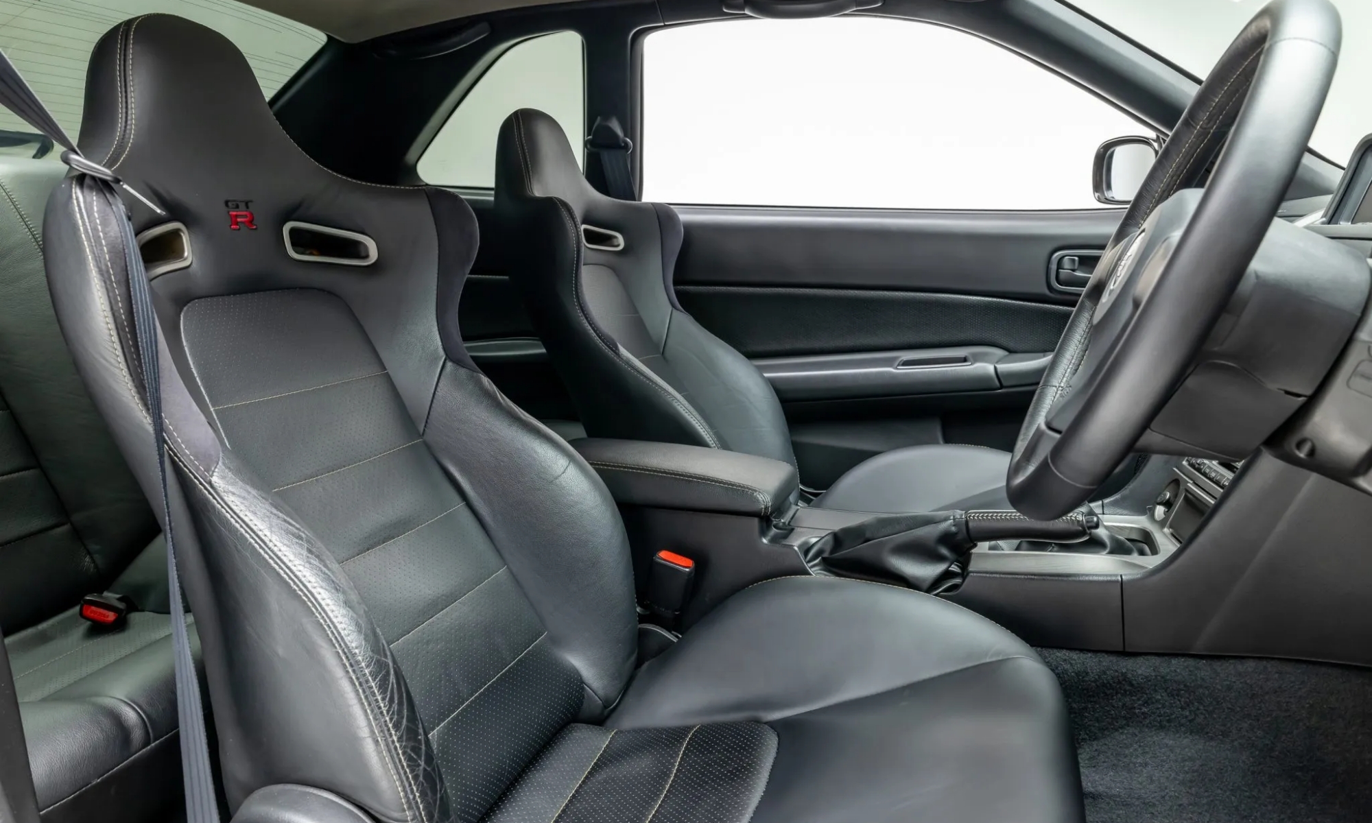 Utasterében háromküllős sportkormány van és fűthető bőrkárpitos ülések, a középkonzol tetején egy LCD kijelző van, melyen különböző fontos adatok jelennek meg. Alatta úgy néz ki a rengeteg gomb, mint egy minihifi, de a Nissan Skyline GT-R pontosan ezektől a részletektől és az eszelős technikától annyira fantasztikus sportkupé.