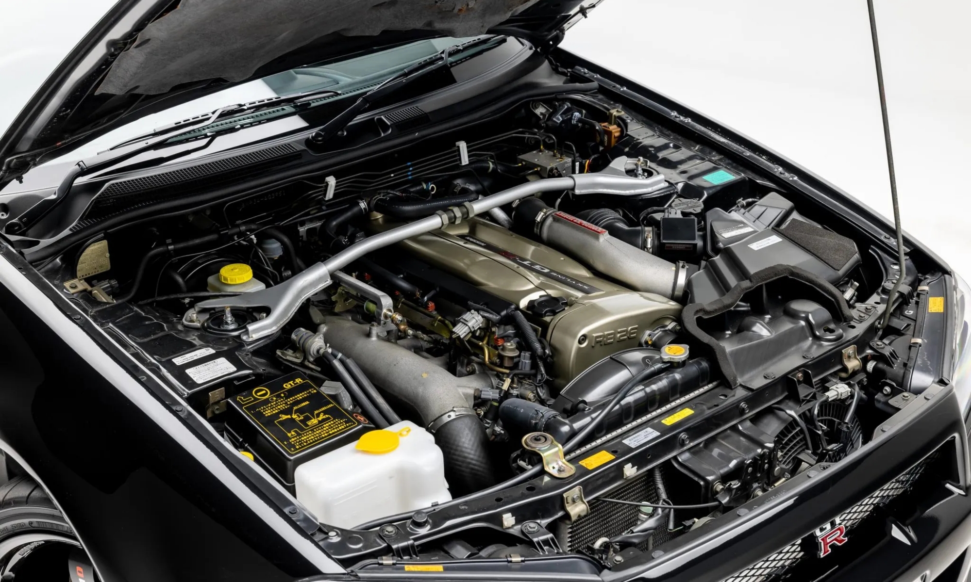 Alumínium gépházteteje alatt ott az RB26DETT kódú, 2,6 literes, két turbófeltöltővel megfújt sorhatos benzinmotor. Ez már bőven túlszalad a 280 lóerőn, megerősített blokkal, dugattyúkkal, hajtórudakkal, továbbá egy halom apró, de annál fontosabb változtatással hergelte a Nismo. Az M-spec Nürre már 320 lóerőt mondanak, de azt is kacsintva. Hatfokozatú kézi váltó és egy elektronikusan vezérelt összkerékhajtás (ATTESA) csatlakozik a motorhoz, de van összkerék-kormányzás (HICAS) és állítható HKS futómű is a Skyline GT-R-ben.