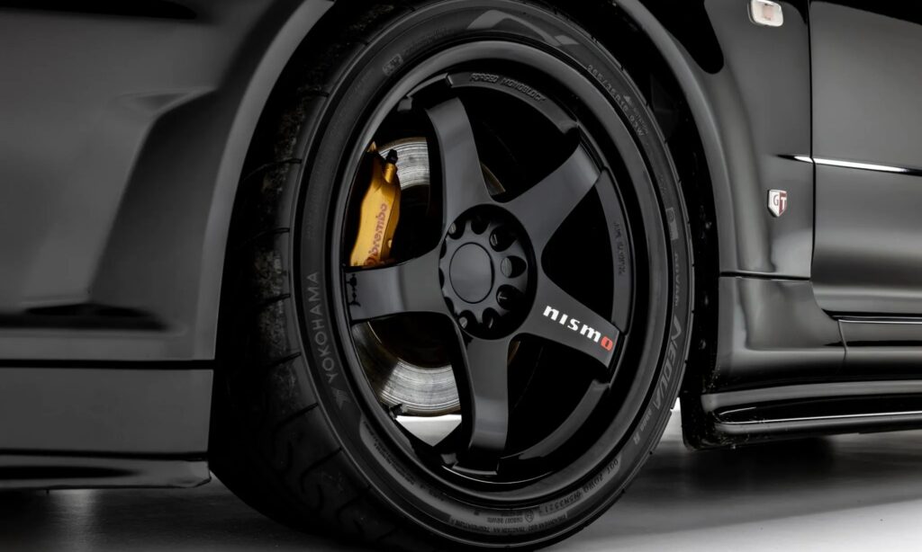 Nem maradéktalanul gyári ez a 2002-es Skyline GT-R, de csak a korszakhoz passzoló kiegészítők vannak rajta. Az eredeti felnik helyett 19 colos, kovácsolt alumínium Nismo kerekeken gurul, szintén a Nismótól származik a küszöbök alatti él, a hátsó lökhárító alatt pedig karbon diffúzor van. Elég megnézni ezt a mindenütt fekete Skyline GT-R-t és azonnal világos lesz, hogy miért ragadt rajta örökre a godzilla név.