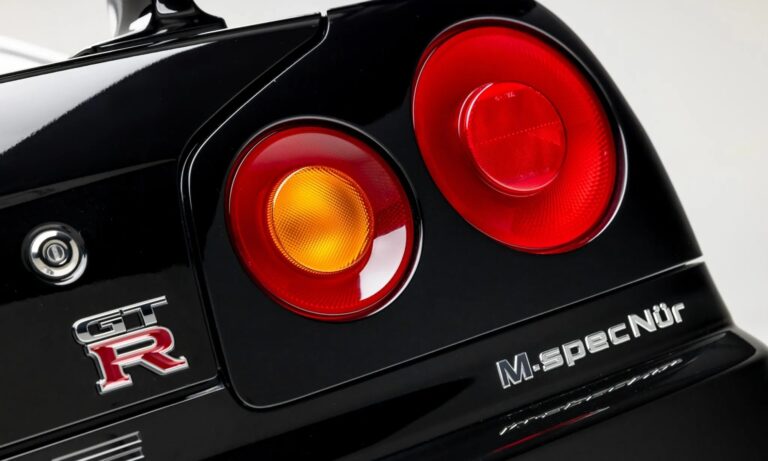 Gyönyörű színek voltak az R34-es Skyline-hoz, de ez a 2002-es M Spec Nür még tiszta feketében is nagyot mutat.