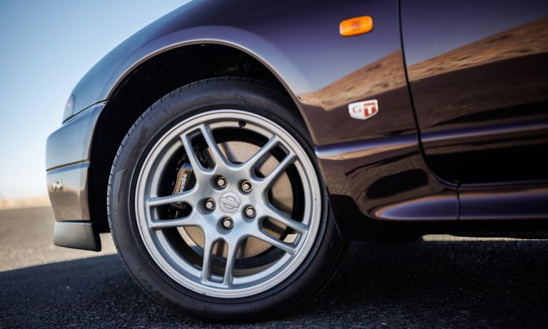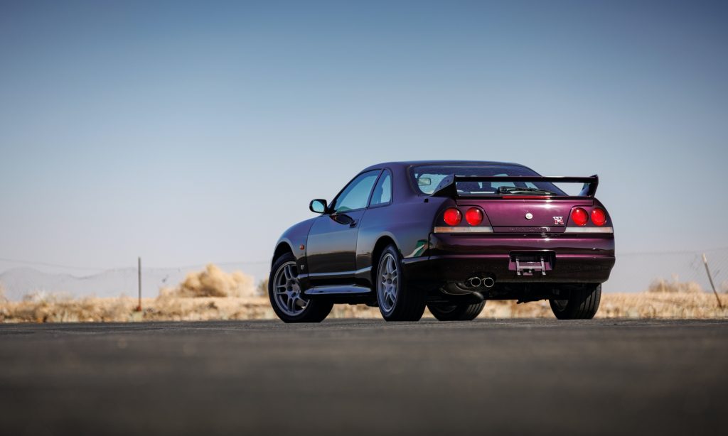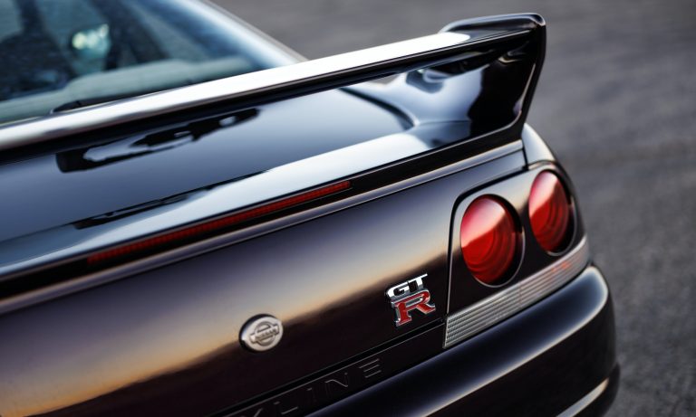 Hasonló GT-R-ek előfordulnak az aukciókon, de ilyen friss R33-as ritka látvány még ebben a műfajban is. Színe az egyik legnépszerűbb és legizgalmasabb Midnight purle, tehát az elképesztően mély lila metálfény, mely bizonyos fényviszonyok között még arany árnyalatot is felvesz az éleken. Technikáján túl ez a fényezés még a klasszikus kétajtós kupé formát is a lehető legszebb formában mutatja meg.
